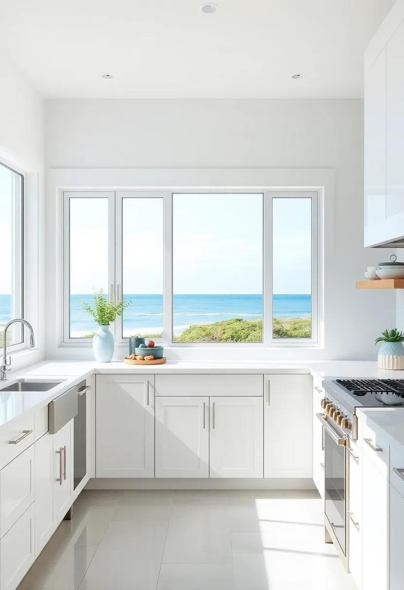 Large Windows: Maximize natural light with large windows or sliding glass doors that connect your kitchen to the outdoors, enhancing your beachy vibe