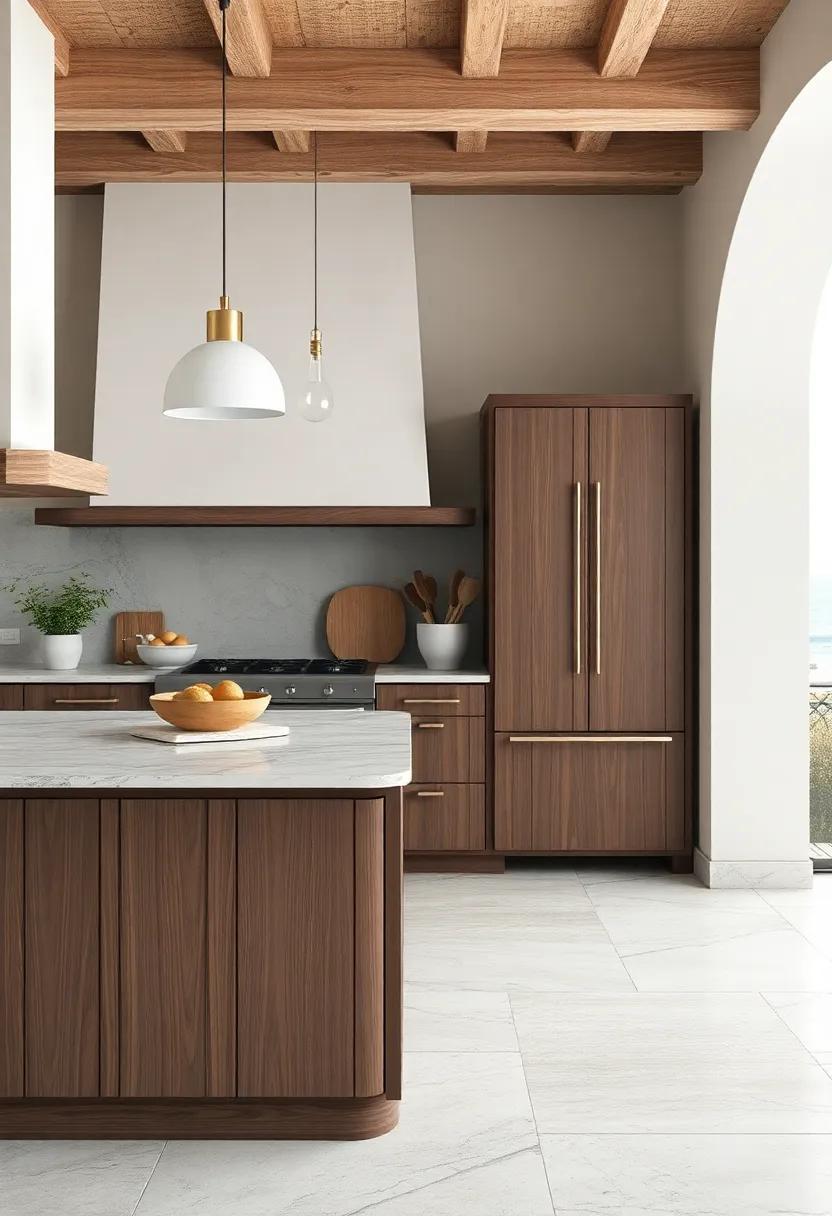 Rustic Wood Beams: Expose wooden beams or install faux wood beams to add warmth and a sense of traditional coastal architecture to your kitchen