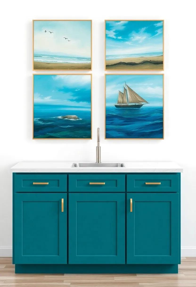 Marine-Themed Artwork: Hang paintings or prints that feature beach scenes, marine life, or coastal landscapes to immerse your kitchen in serene visuals