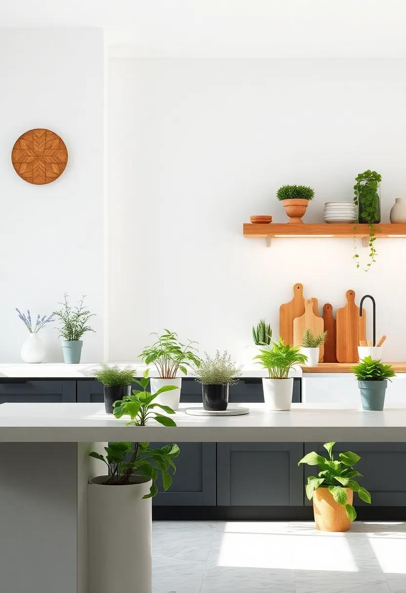 Natural Elements: bring nature indoors with potted plants or herbs, reminiscent of coastal gardens, to add life and freshness to your kitchen