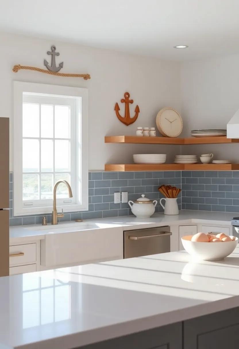 Nautical Accents: Incorporate subtle nautical elements like rope handles or anchor motifs in your kitchen decor to give a nod to seaside living