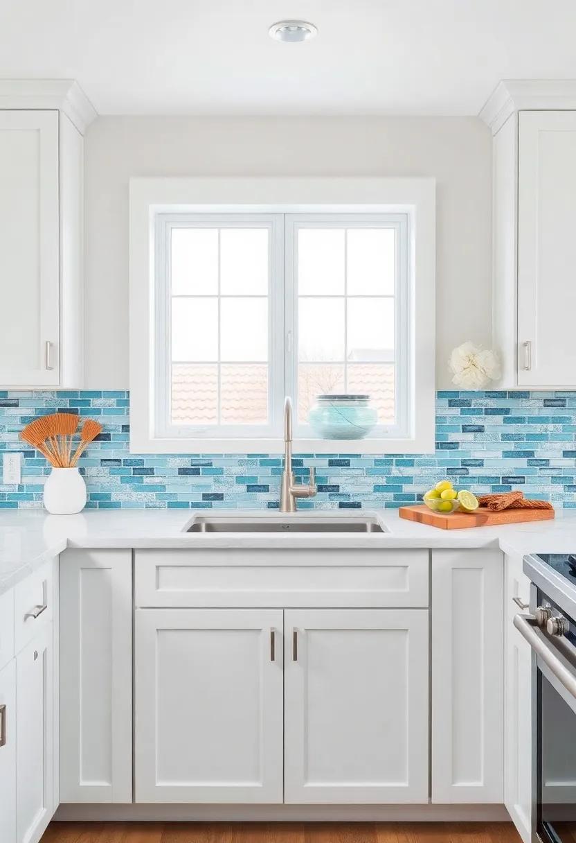 Ocean-Inspired Tile: Consider marine-themed backsplash tiles—like sea glass or mosaic patterns—that capture the essence of coastal living