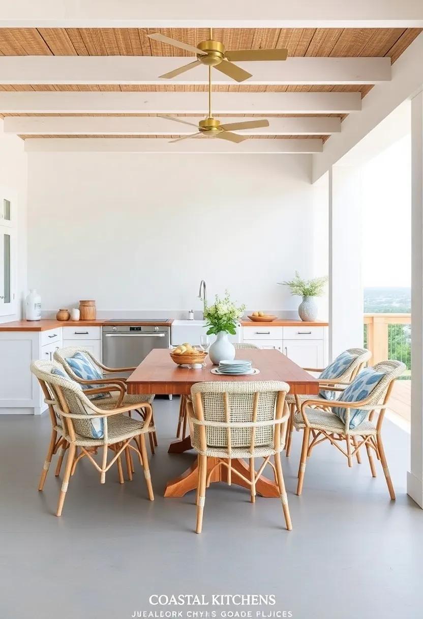 To complete the outdoor dining look, add decorative elements that enhance the beachy theme. Hang string lights overhead to create a warm ambiance during evening meals, and adorn the table with centerpieces featuring seashells, driftwood, or fresh flowers to bring a touch of nature indoors.Layering textures with woven placemats or linen napkins can enhance the casual yet chic feel, making every meal feel like a coastal retreat. A few potted herbs or succulents can also bring a splash of greenery, ensuring your kitchen remains vibrant and inviting, even on the busiest of days.