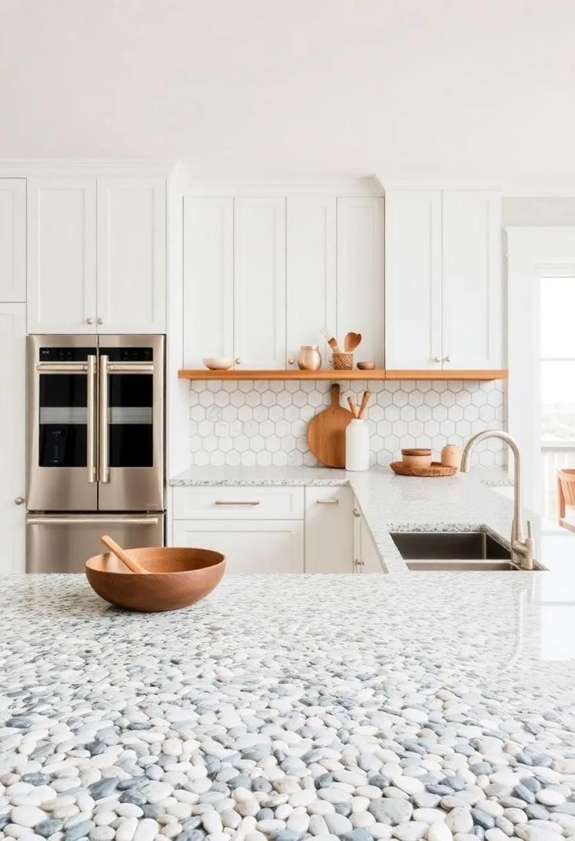 Pebble countertops: Consider countertops that mimic natural stone or pebbles, invoking the feel of walking along a stony beach