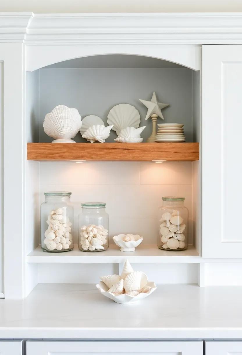 Transforming your kitchen into a coastal haven can be as simple as incorporating natural elements like seashells. Place a mixture of large conch shells and delicate scallops on open shelves to add a touch of the ocean. Consider using a glass cloche to house smaller shells, creating a curated display that captivates without cluttering. You can also fill a vintage jar with assorted seashells, pairing it with a woven placemat to evoke the feel of sandy shores. This subtle nod to the beach not only enhances the aesthetic but also sparks conversation when friends gather in your kitchen.