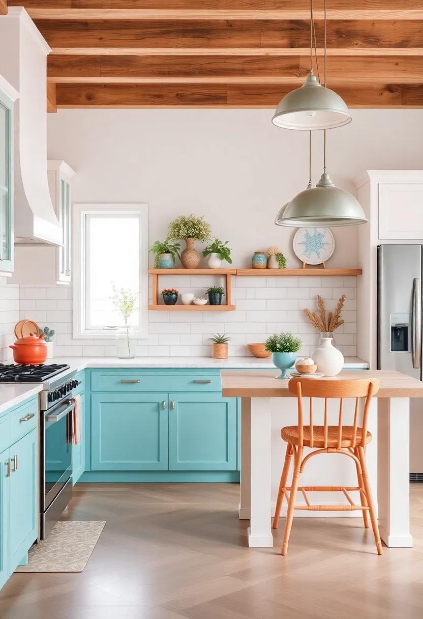 Transform your kitchen into a vibrant coastal retreat by incorporating small decor items in cheerful seaside colors like coral, sand, and turquoise. These shades can invigorate the space, making it feel like a breezy beachside haven.Consider the following decor pieces to enhance your kitchen: