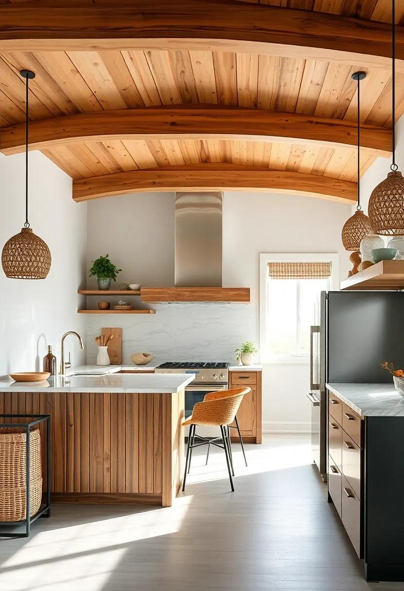 Natural Wood Accents: incorporate reclaimed wood elements, from countertops to shelving, to bring organic warmth and a rustic feel reminiscent of seaside cottages