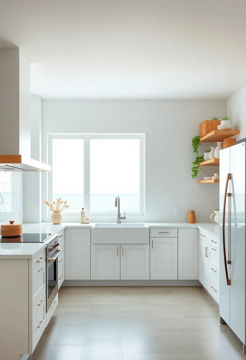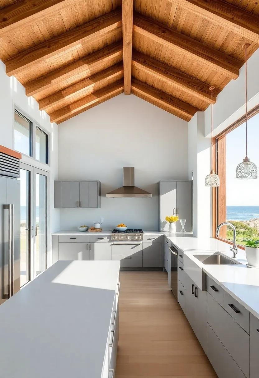 Transform your kitchen into a seaside sanctuary by embracing large windows and open doors that seamlessly connect your living space with the natural beauty just outside. Imagine cooking dinner while basking in the soft glow of the golden sun, or enjoying a morning cup of coffee while the ocean breeze swirls through your home. This design concept not only enhances the aesthetic appeal but also underscores the essence of coastal living, bringing the outdoors in and seamlessly blending your kitchen with the surrounding environment.
