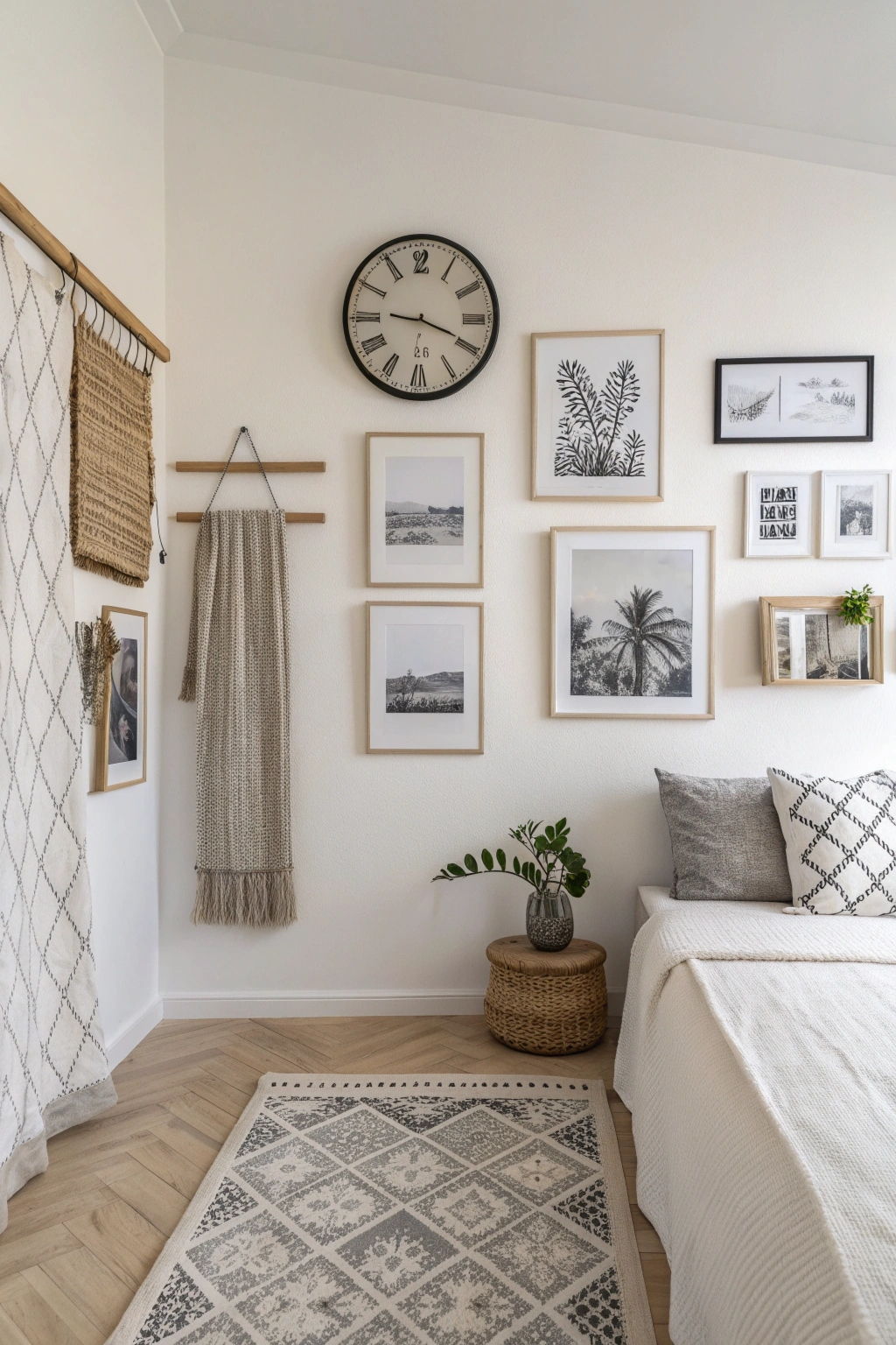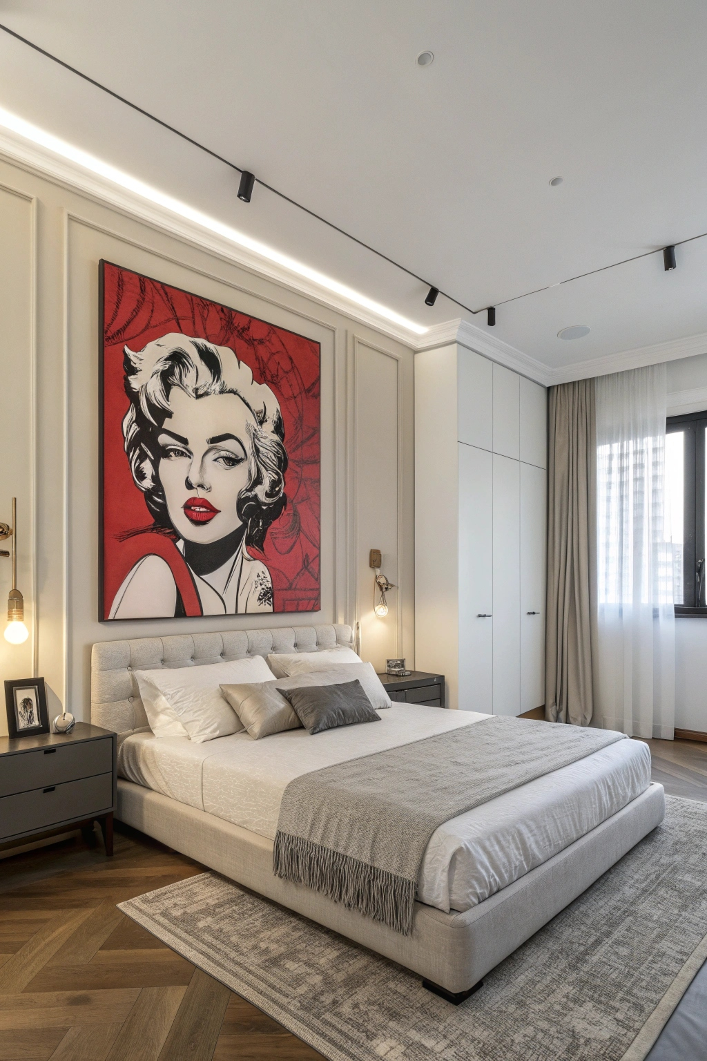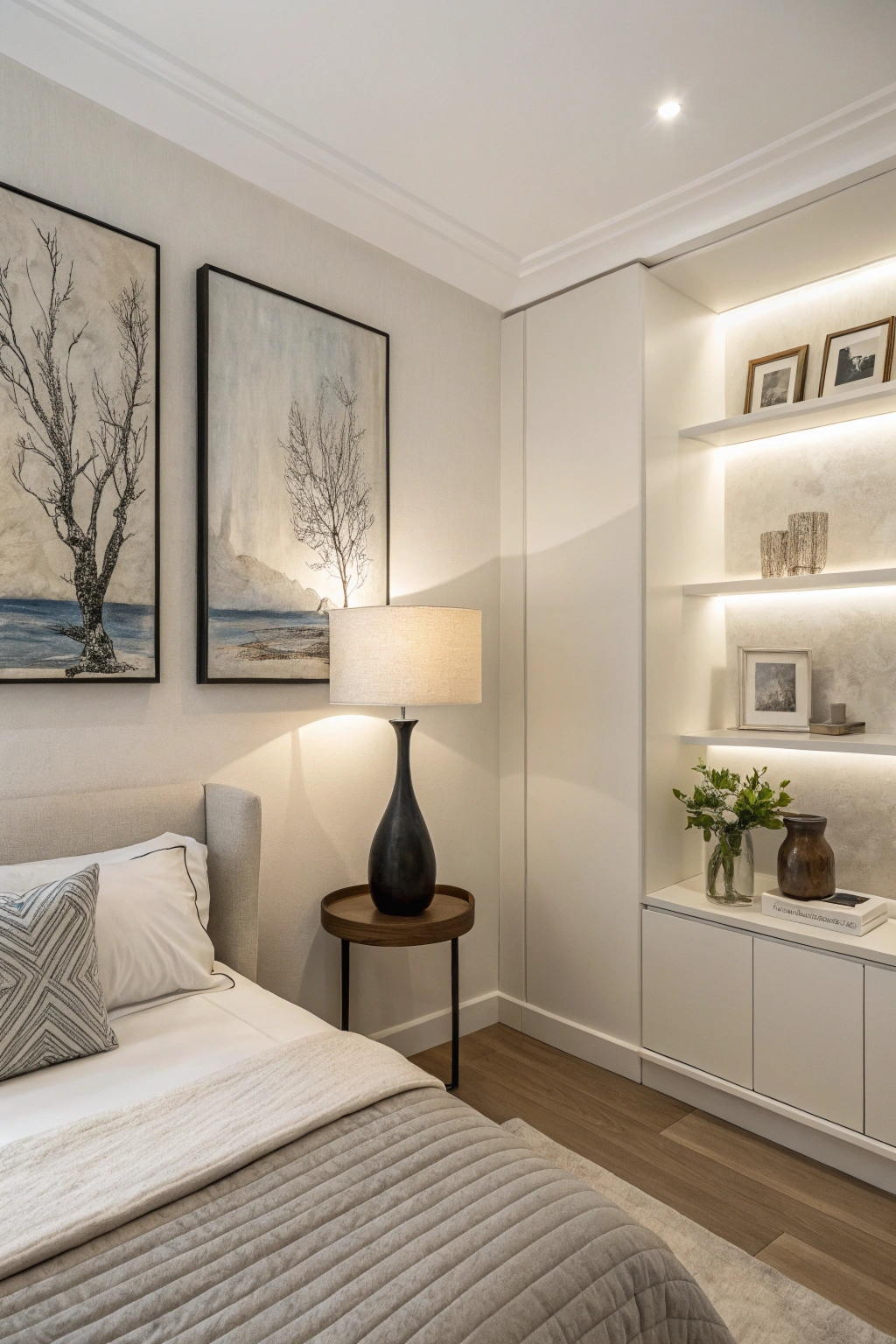 Transform your bedroom walls into a curated gallery with minimalist art displays. Consider: