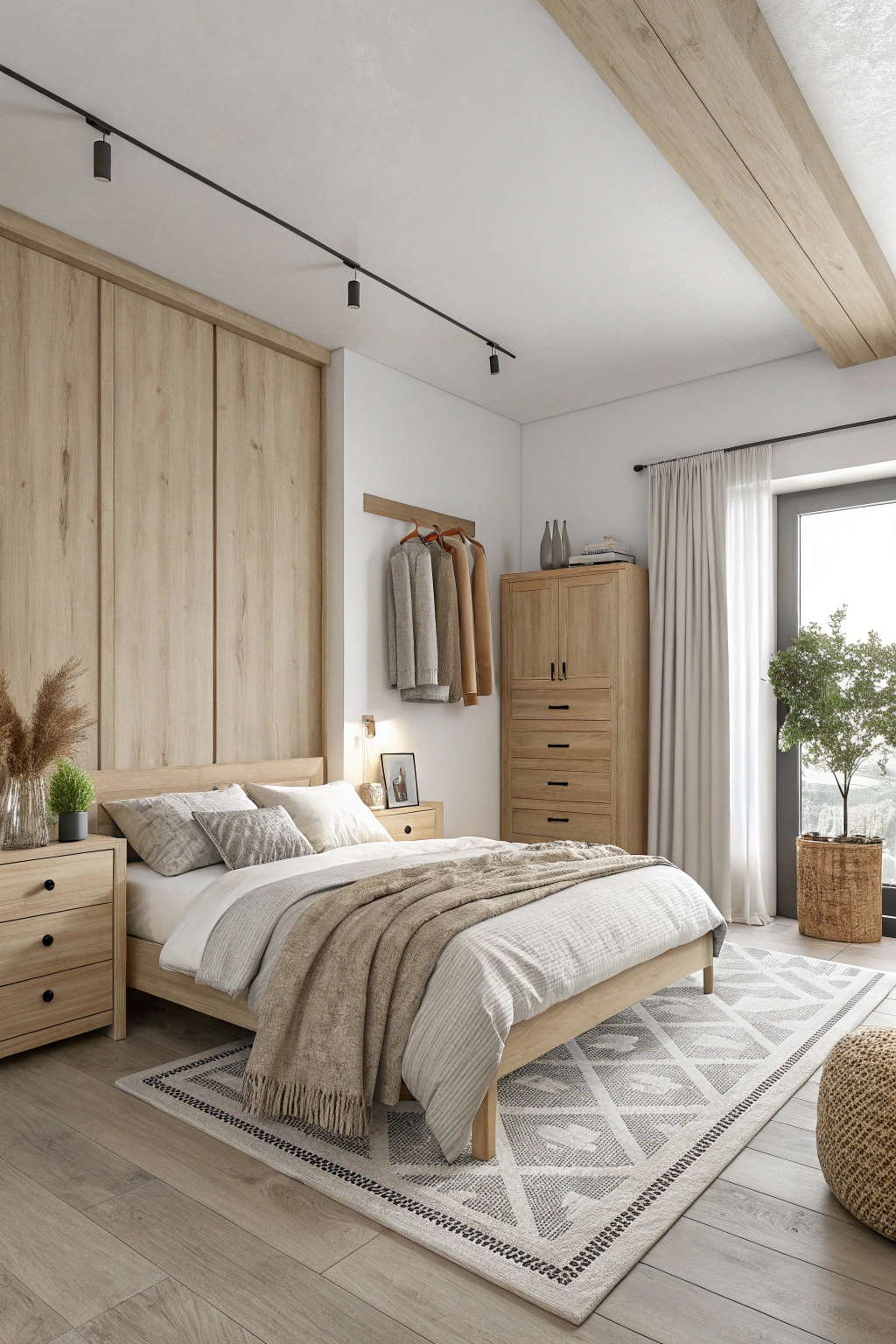 Infuse your bedroom with Scandinavian-inspired elements to achieve a warm yet minimalist vibe. Emphasize natural materials, light wood tones, and soft textiles to create a cozy, inviting space. Key features include: