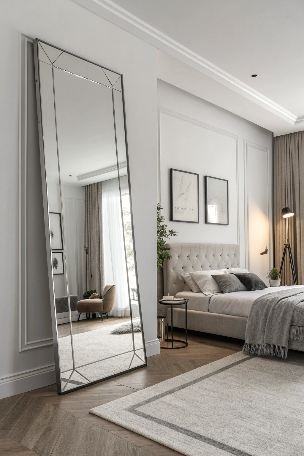 Mirrors are powerful tools for amplifying light and creating the illusion of space. Choose frameless or geometric designs to complement your minimalist style. A large statement mirror can serve as both a functional and decorative element, enhancing brightness and depth.