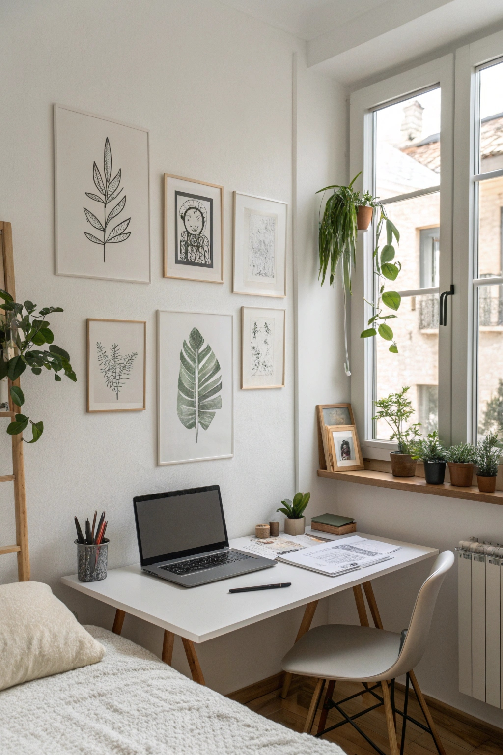 Extend your minimalist ethos to a compact workspace within your bedroom. Select a desk with clean lines and keep the surface free of clutter. Limit tools to essentials like a laptop, notebook, and pen. Incorporate natural light and a small plant to inspire focus and creativity in a calm setting.