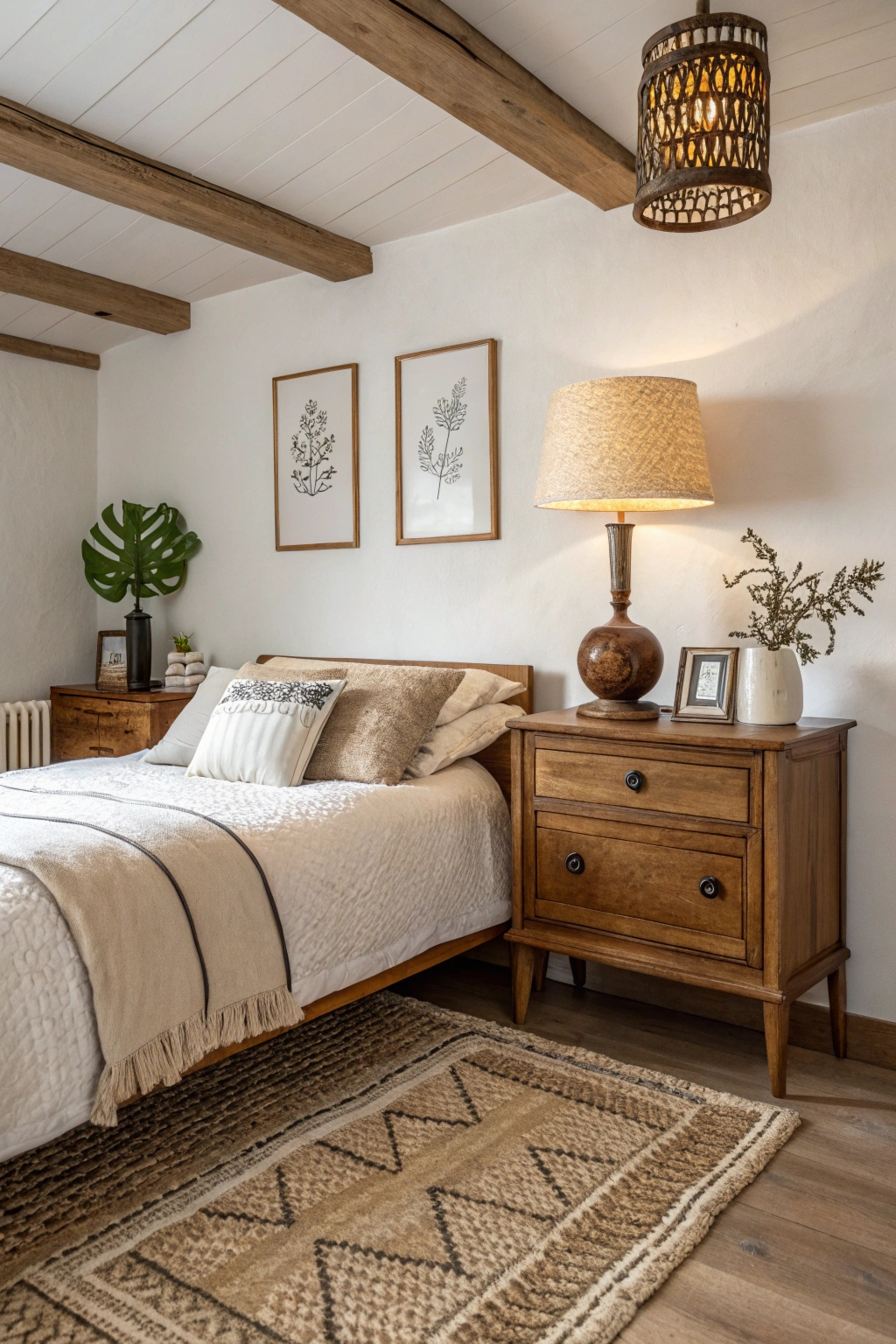 A vintage minimalist bedroom sets the perfect stage for tranquility. Enhance this calmness by focusing on:
