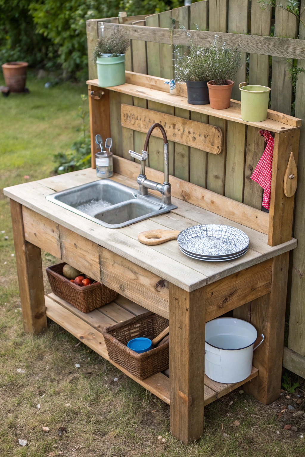 Incorporate a vintage sink into your mud kitchen to add both functionality and nostalgic charm. This unique feature can hold water or mud, providing a dedicated space for mixing and messy play. Its distinctive look becomes a captivating centerpiece, inspiring imaginative scenarios and creative storytelling.