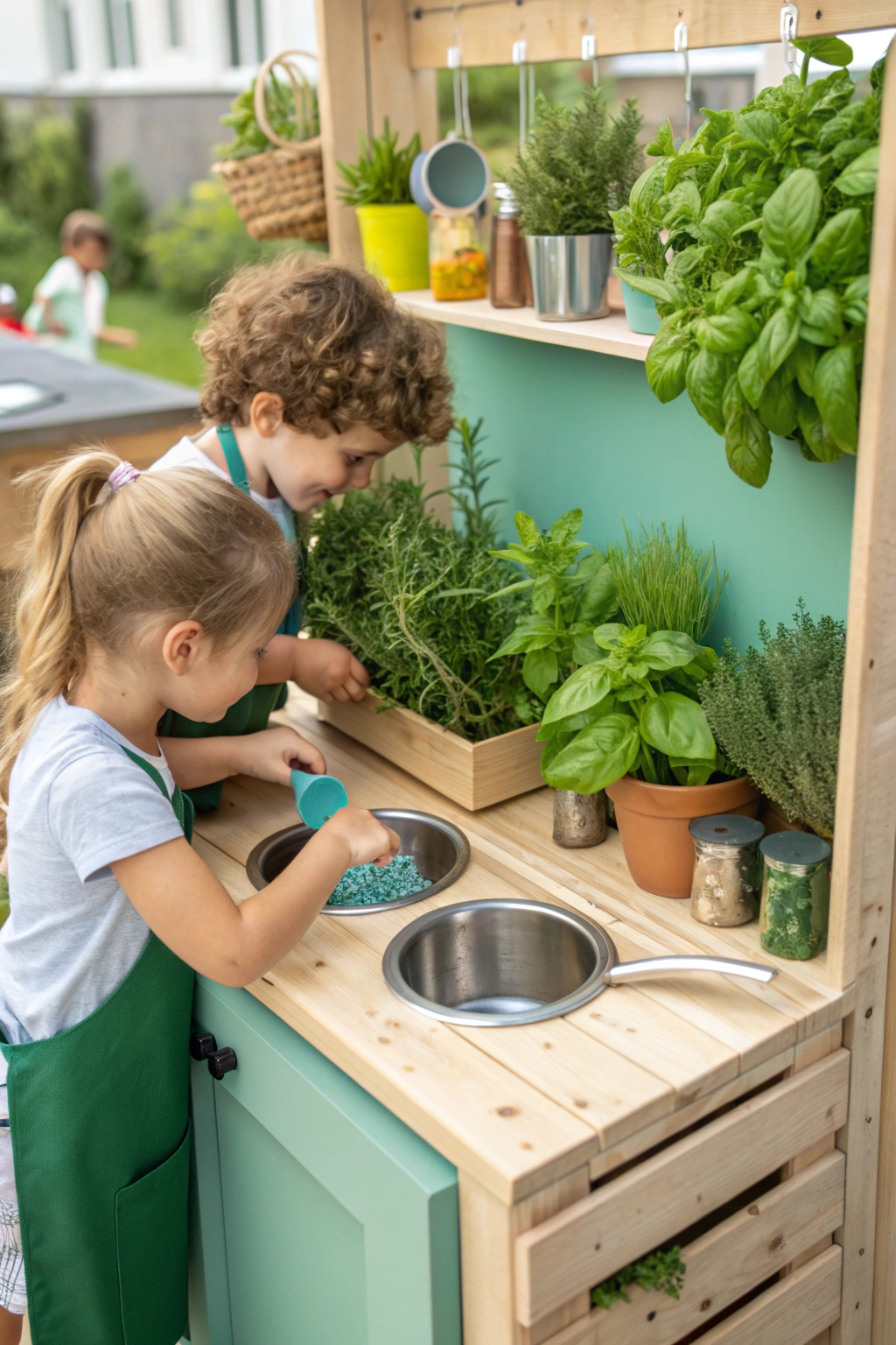 Enhance sensory experiences by integrating aromatic herbs into your mud kitchen. Fresh basil offers soft, smooth leaves; rosemary provides prickly needles; and mint delivers a refreshing scent. These additions stimulate multiple senses, enriching imaginative play and encouraging curiosity.
