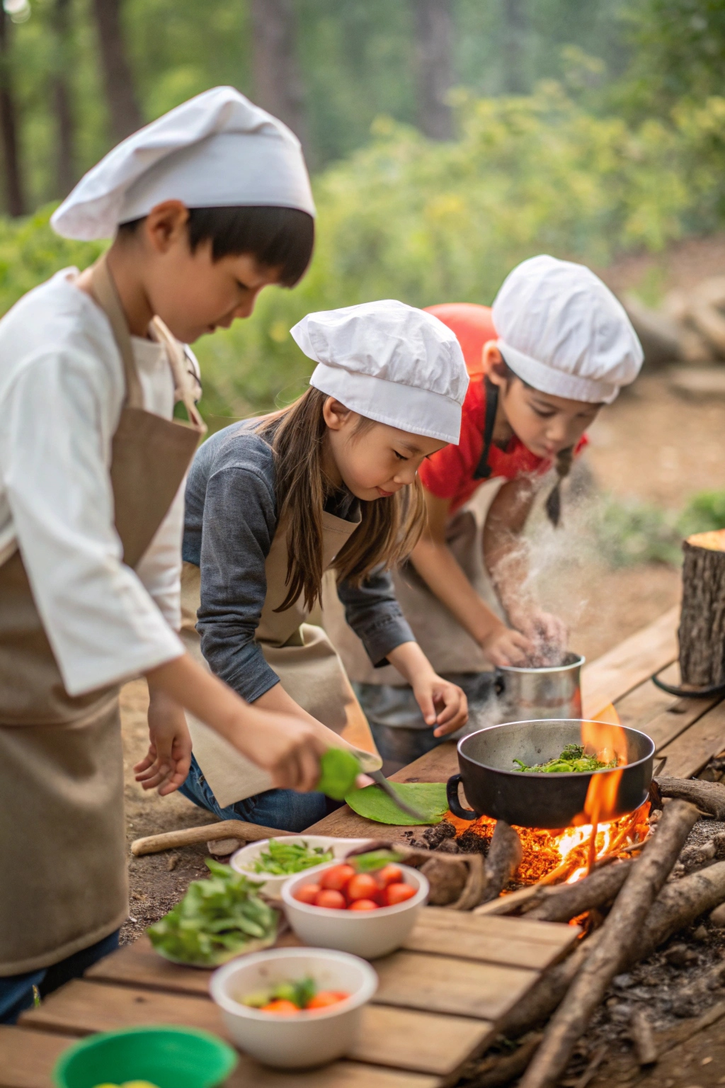 Organize outdoor cooking classes to nurture your child’s culinary curiosity while enjoying nature. These sessions involve hands-on activities like gathering ingredients and cooking over an open flame, promoting creativity, teamwork, and an appreciation for sustainable food practices. It’s a fun and educational way to deepen their connection to the outdoors.