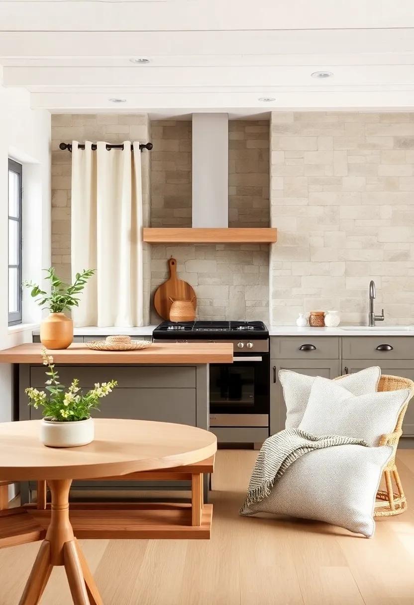 Layering textiles in varying shades and patterns deepens the visual interest while maintaining a cohesive theme.Consider using earthy tones or muted patterns to complement the stone’s palette. To further enhance the snug atmosphere, you could introduce a few soft throws draped across the back of a chair or on an open shelf.Pair these textiles with minimalist accessories to avoid overwhelming the senses. Here are some ideas for textiles to bring warmth and personality into your kitchen: