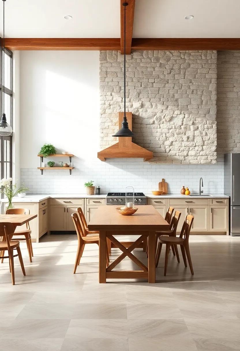 crafting an open layout in your farmhouse kitchen can transform the entire ambiance of the space, making it more inviting and functional. By seamlessly blending your dining and cooking areas, you not only create a spacious feel but also promote interaction amongst family and guests. imagine a large kitchen island acting as a boundary-less transition point: one side can house sleek cooking appliances while the other serves as a casual dining space. Choose materials that complement the stunning stone walls, like rustic wood or metal accents, to harmonize both functional and aesthetic elements.