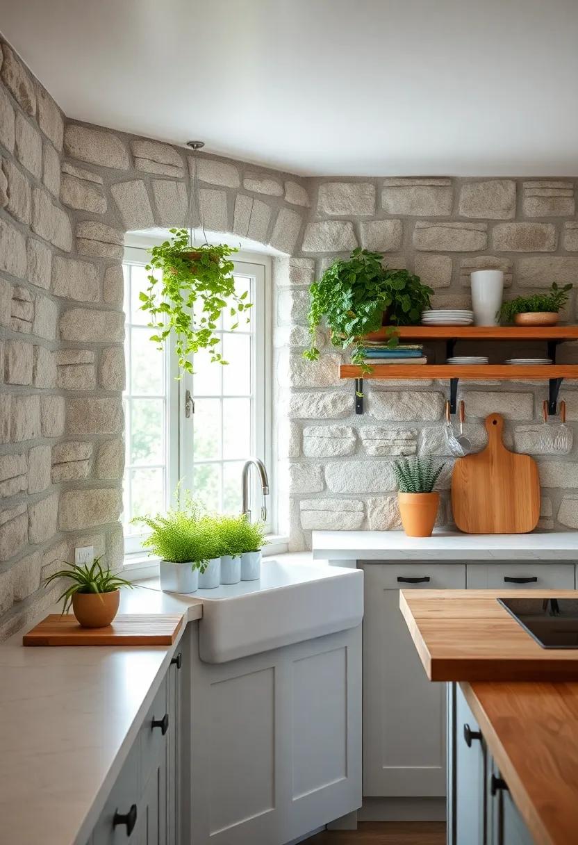 Farm-Fresh Herb Garden – Install a small herb garden by the window to bring a touch of greenery and freshness to your stone kitchen