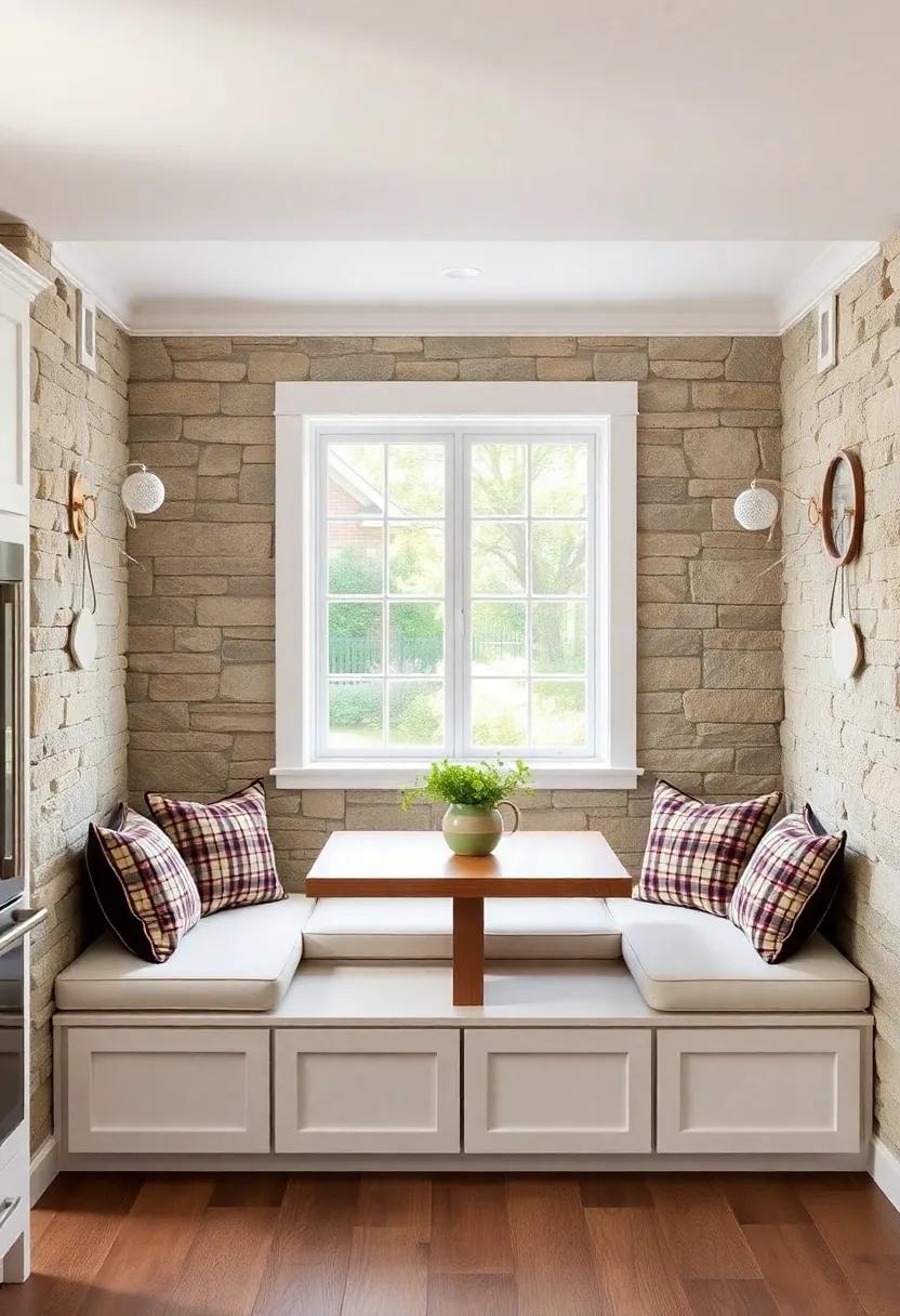 Fashion a Breakfast Nook - Create an intimate corner with built-in seating and cushions, framed by the rugged texture of stone
