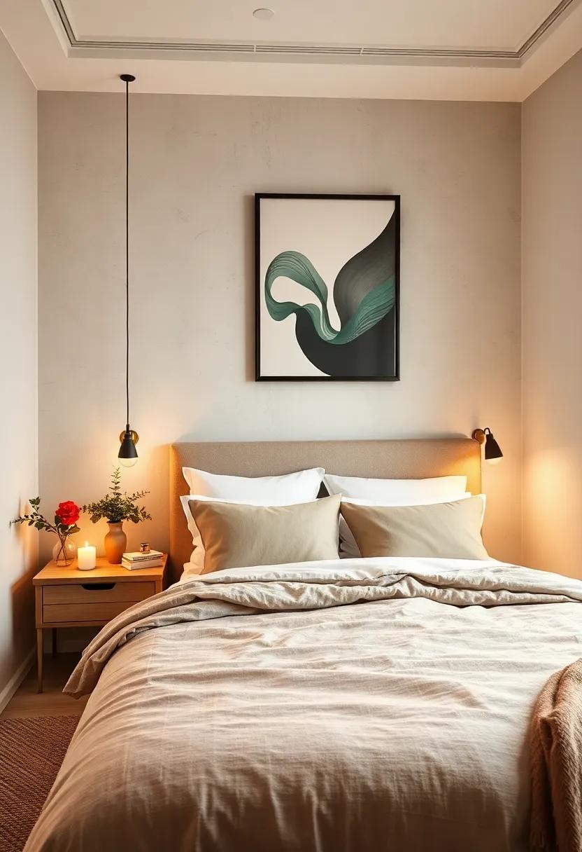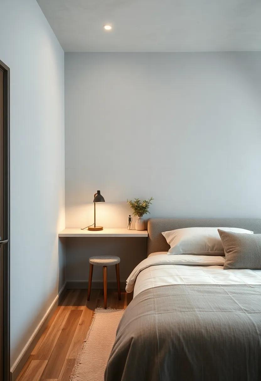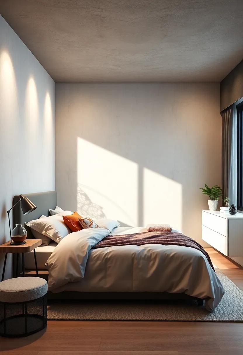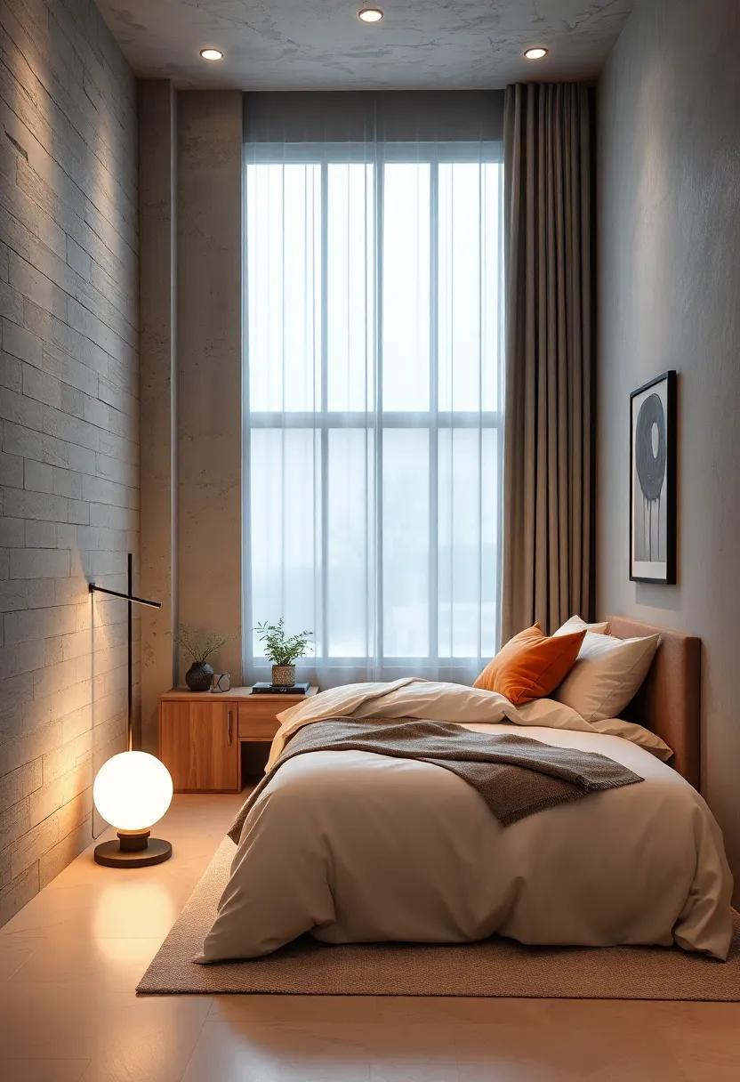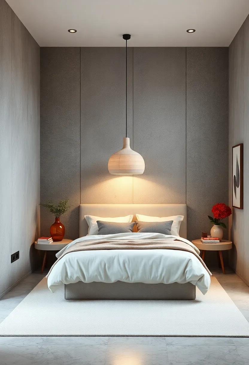in a small bedroom, every element counts, and choosing a single, oversized statement lamp can serve as a breathtaking focal point that enhances the overall aesthetic without overwhelming the space. Striking yet understated, such a lamp can effortlessly illuminate the room while adding a pop of personality. Opt for designs that feature materials like brushed metal or geometric shapes that yield an artistic flair, ensuring that the lamp elevates the minimalistic theme.Consider color or texture contrasts with the surrounding decor to create visual interest without cluttering the area. An oversized lamp can easily become a conversation starter, encouraging both style and functionality.