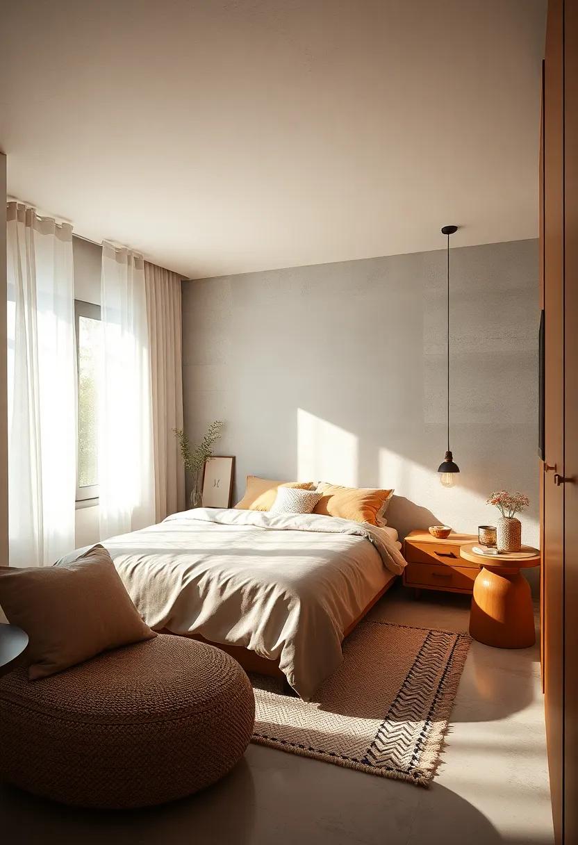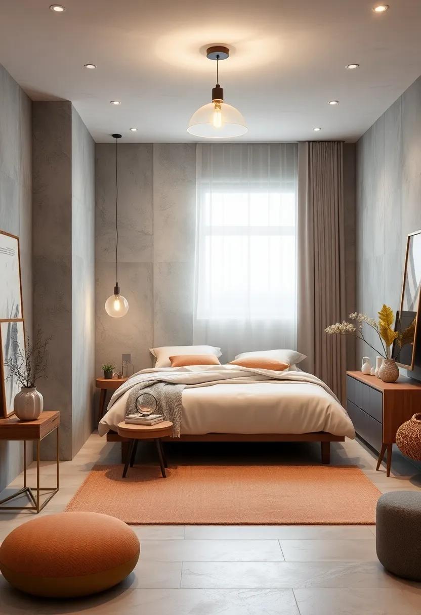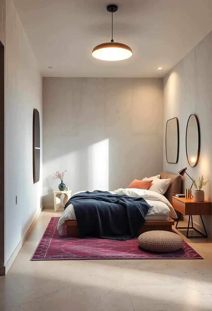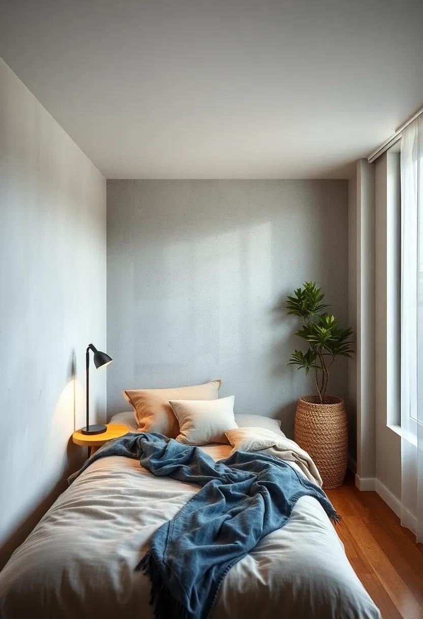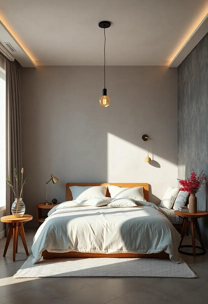 in a small bedroom, every element counts, and choosing a single, oversized statement lamp can serve as a breathtaking focal point that enhances the overall aesthetic without overwhelming the space. Striking yet understated, such a lamp can effortlessly illuminate the room while adding a pop of personality. Opt for designs that feature materials like brushed metal or geometric shapes that yield an artistic flair, ensuring that the lamp elevates the minimalistic theme.Consider color or texture contrasts with the surrounding decor to create visual interest without cluttering the area. An oversized lamp can easily become a conversation starter, encouraging both style and functionality.