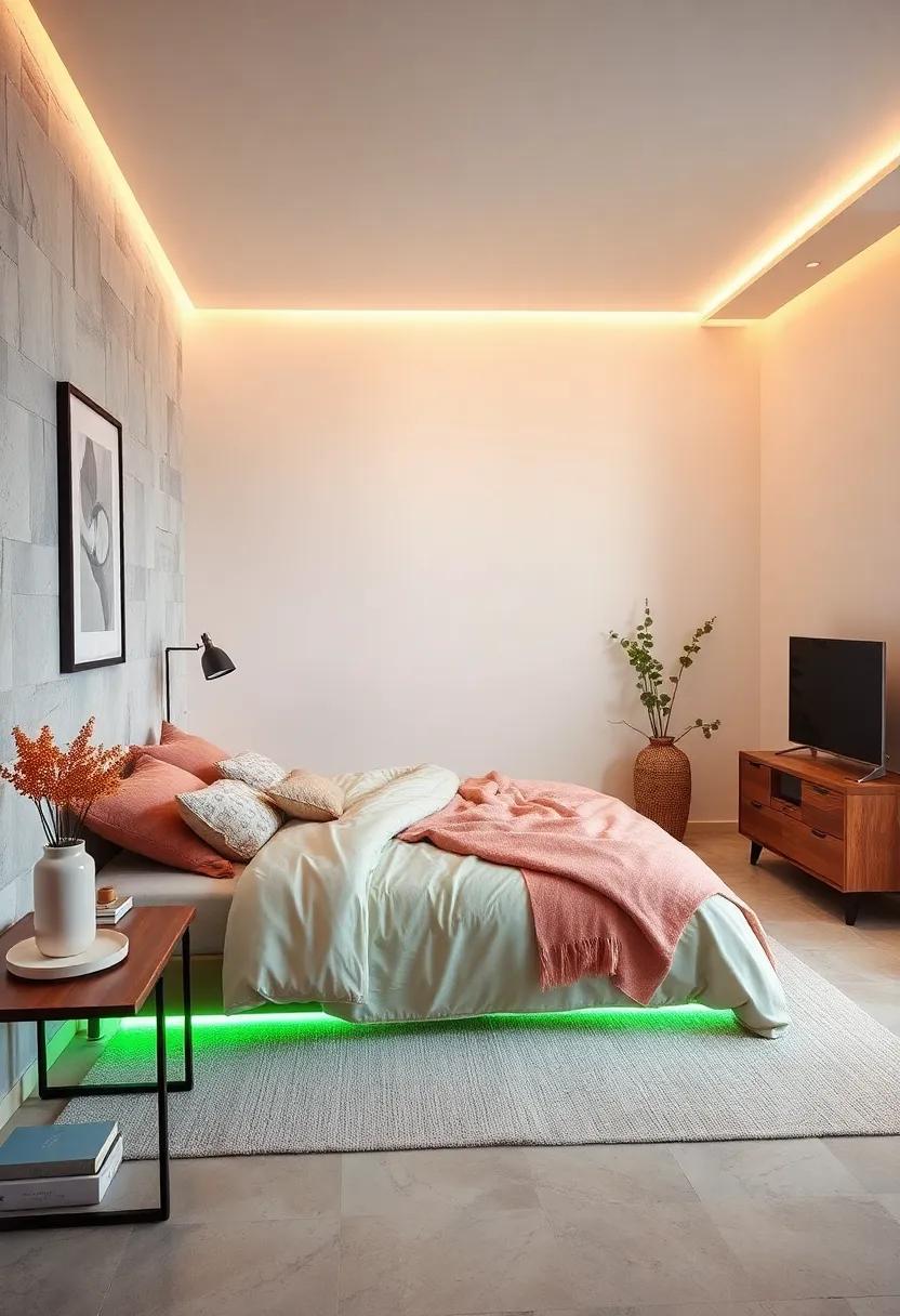 Incorporating LED strip lighting beneath furniture provides an effortless means to enhance the ambiance of your small bedroom retreat. This form of lighting emanates a gentle glow that can transform the perception of your space, making it feel larger and more inviting. Strategically placed along the edges of furniture such as beds, dressers, or even floating shelves, soft illumination can create a stunning visual effect that emphasizes the sleek lines of your minimalistic design. Consider using warmer tones to evoke a sense of coziness, as these hues can blend seamlessly with neutral palettes, offering an inviting and soothing atmosphere.