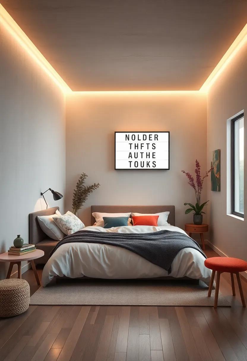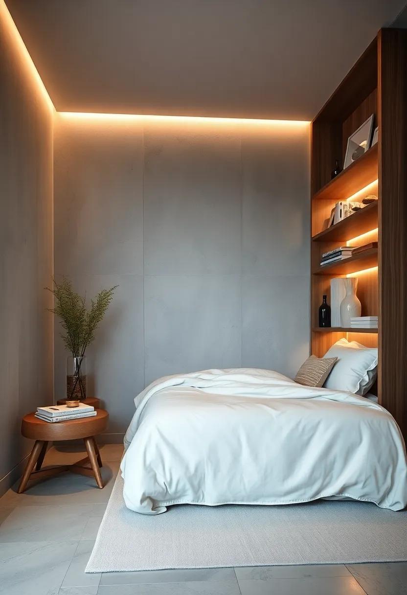 On the other hand, embracing cooler tones like soft blues and crisp whites can instill a sense of freshness and openness, making your small space feel larger and more airy. LED strip lights installed along shelves or behind your bed can create a subtle glow that highlights these cooler shades. Incorporating white bulbs in your ceiling fixtures can boost the natural light during the day and maintain that fresh ambiance. By playing with these contrasting temperatures, you can find the perfect balance that resonates with your personal style while maximizing the comfort and functionality of your bedroom.