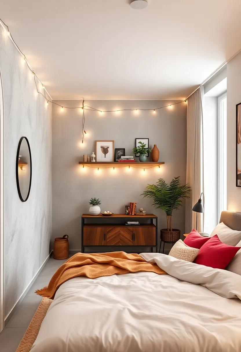 Utilize fairy lights as a whimsical touch; drape them above your bed or along shelves for a soft glow