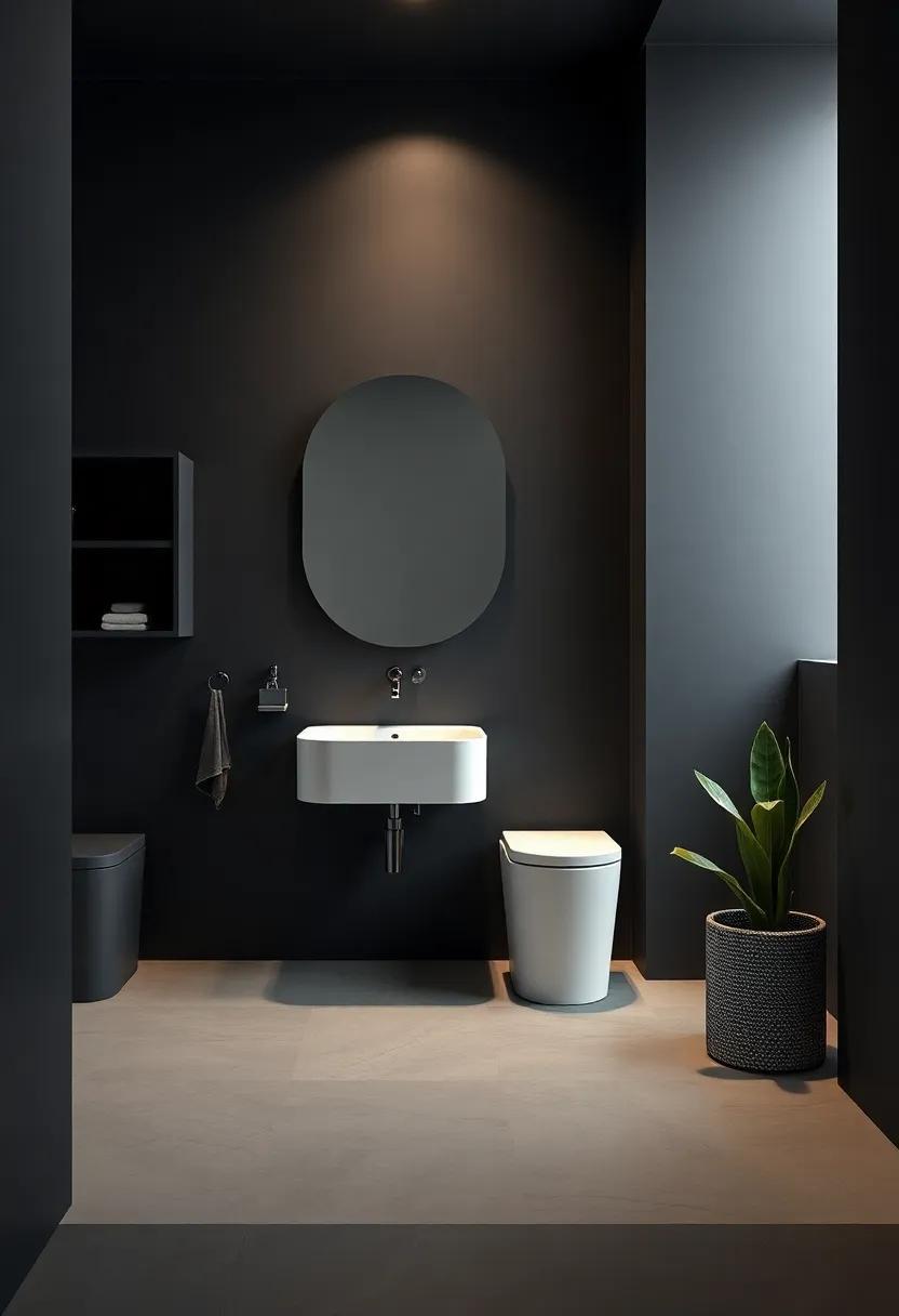 To maximize the impact of your matte black vanity, consider integrating complementary elements that synergize with its striking presence. Here are some ideas: