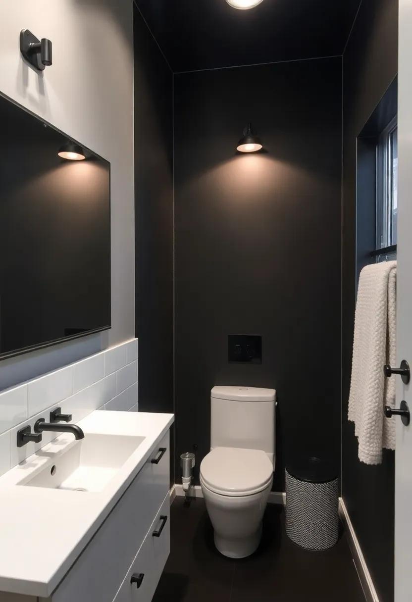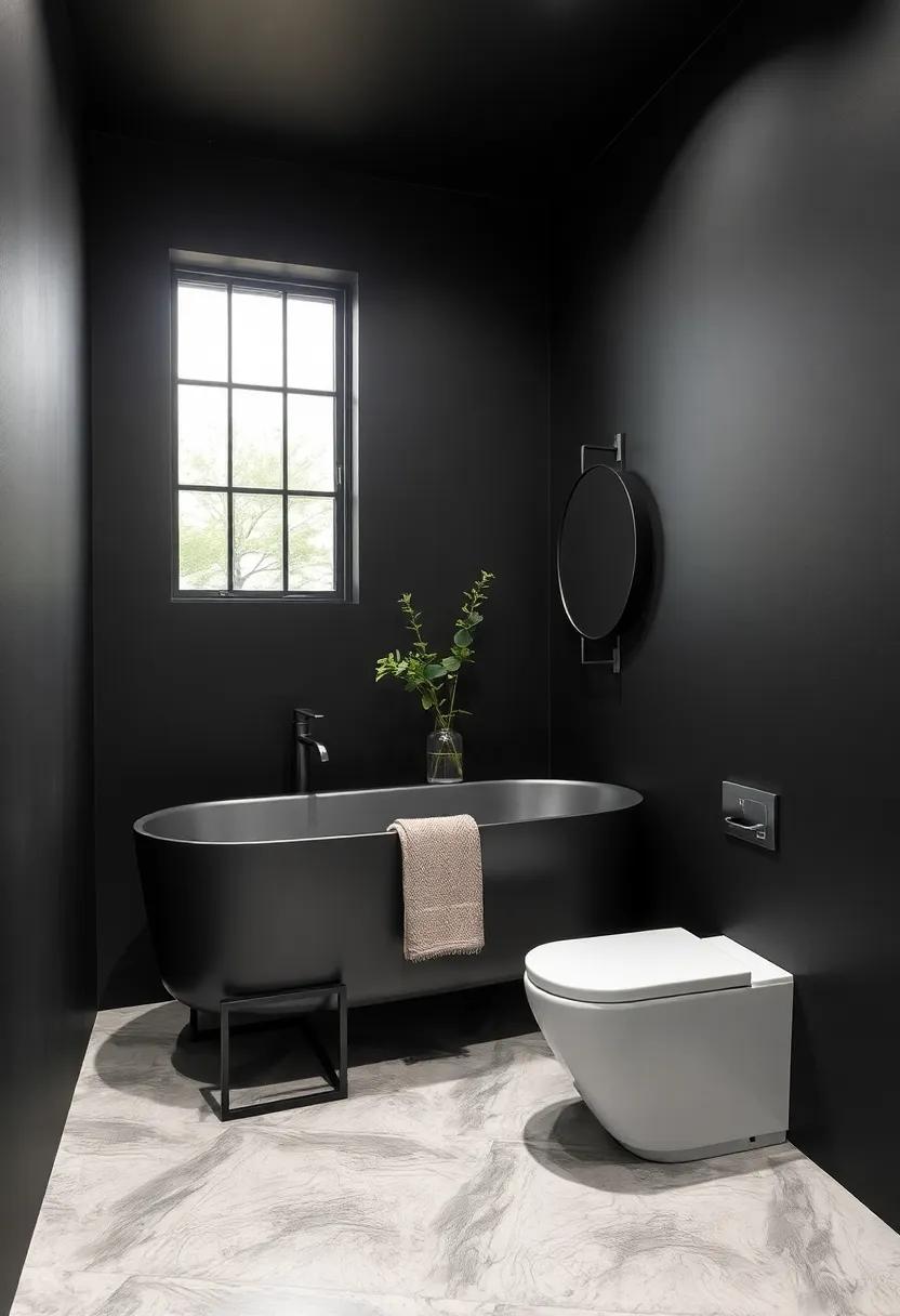 By carefully selecting fixtures and accessories that highlight the matte black accents, such as brass faucets or natural wood shelving, you can create a cohesive look that feels both modern and inviting. Your choice to embrace the intensity of black will not only enhance the room’s industrial vibe but also provide a canvas for other design elements to shine.