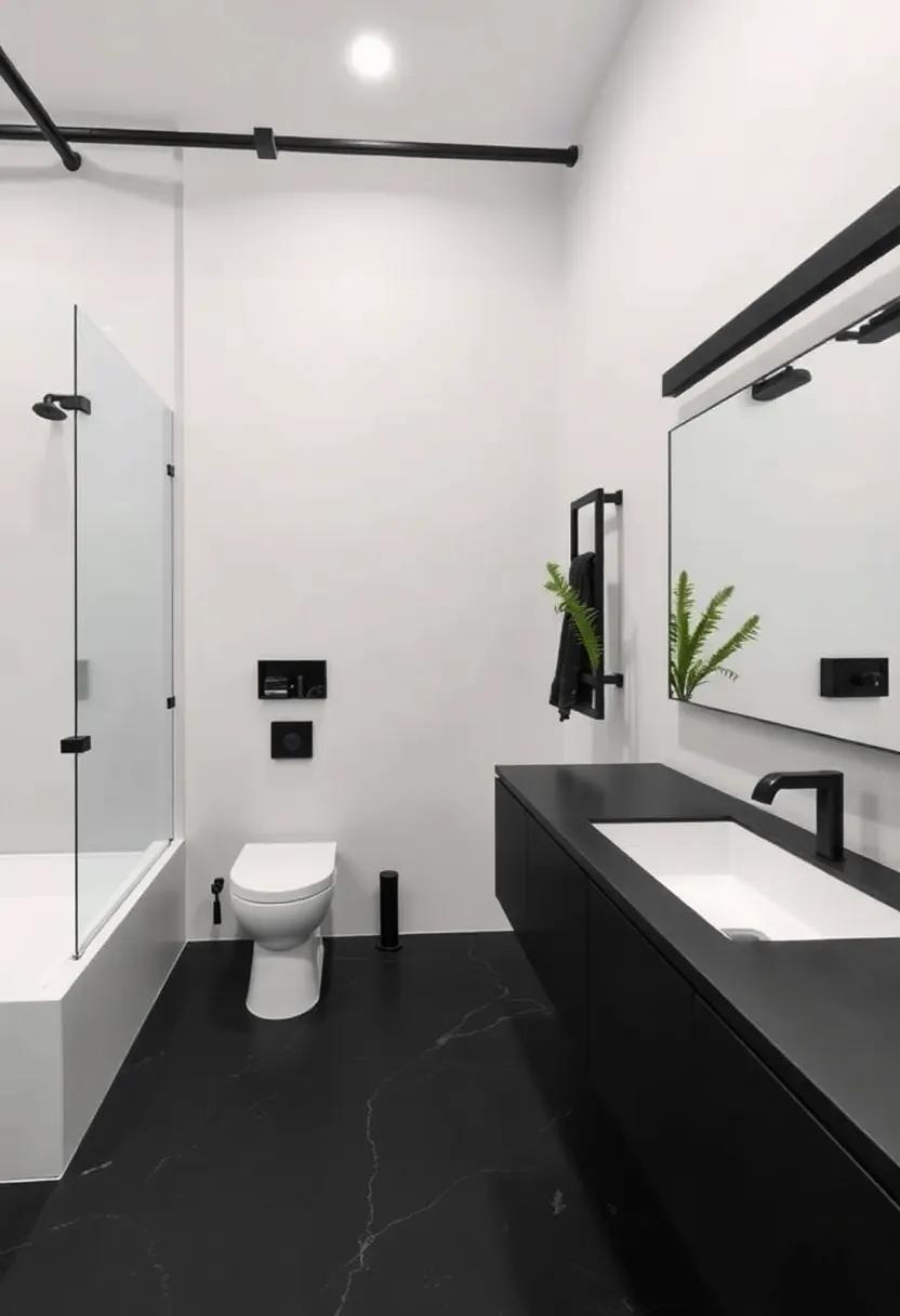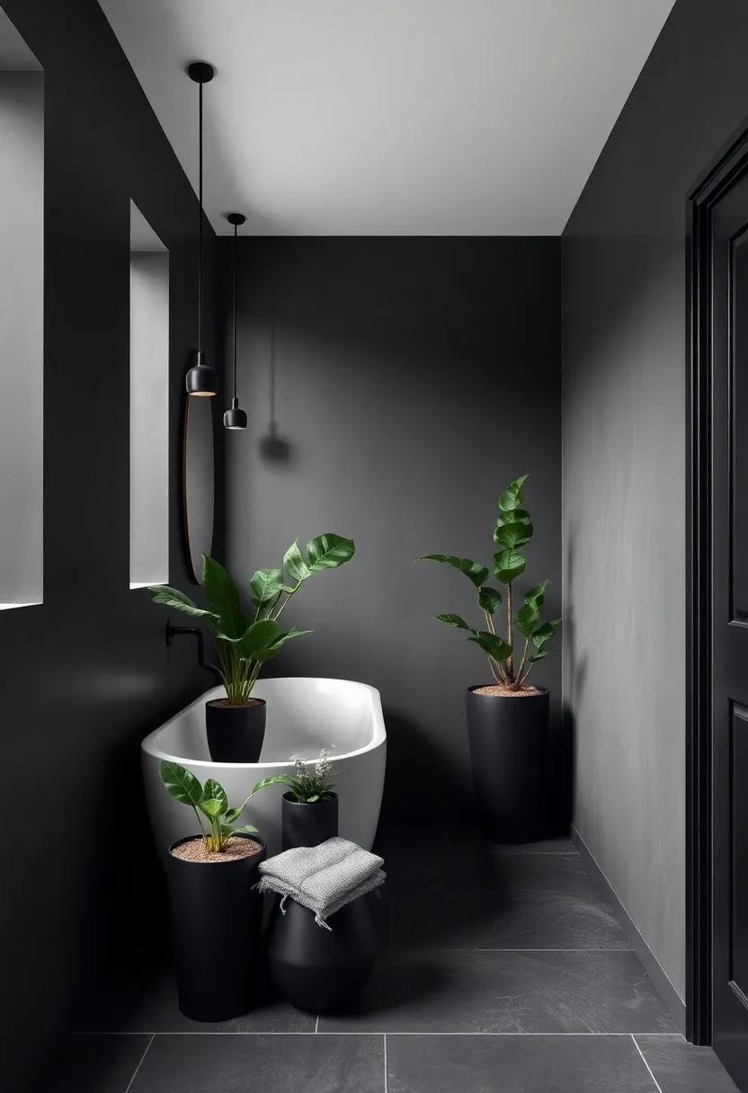 Integrating black planters or pots into your industrial bathroom can create a captivating focal point while harmonizing with the matte black accents.To enhance the aesthetic and provide a fresh contrast, consider using a variety of sizes and styles for your greenery. choose plants that thrive in humidity, such as pothos or ferns, to ensure they flourish in your bathroom environment. pair these vibrant plants with chic matte black pots that complement your fixtures and tile work.