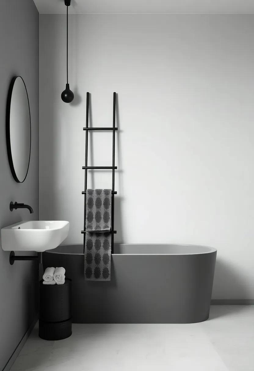 Invest in a Black Towel Ladder: A matte black towel ladder can serve as both a functional storage piece and a stylish accent