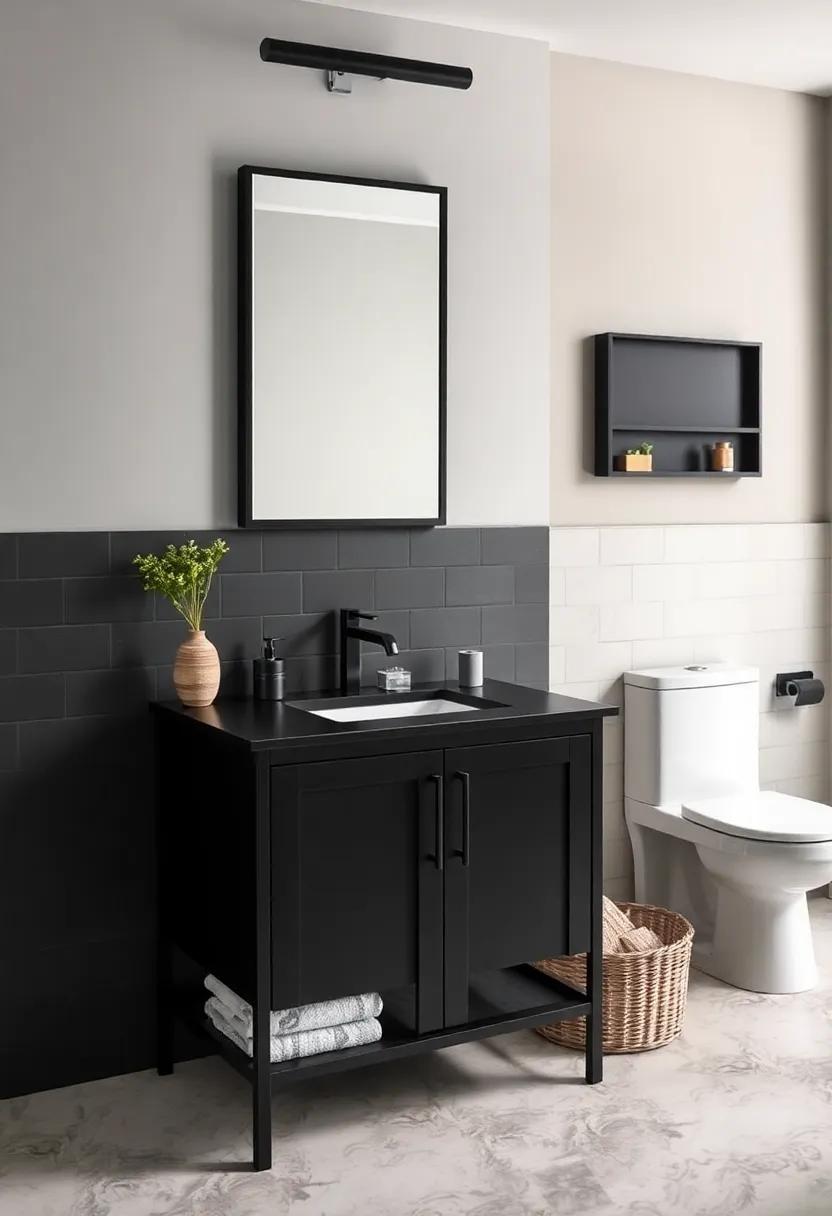 Opting for a matte black bathroom vanity can serve as a striking focal point,providing a contemporary flair that effortlessly harmonizes with rustic or industrial aesthetics.The rich, deep color of matte black not only anchors the space but also brings an element of sophistication.imagine a sleek, structured vanity with clean lines, set against reclaimed wood walls or exposed brick; this combination can foster a captivating contrast that enhances the overall character of your bathroom. Pairing your vanity with vintage metallic accents such as brass or wrought iron fixtures can further amplify that industrial vibe.
