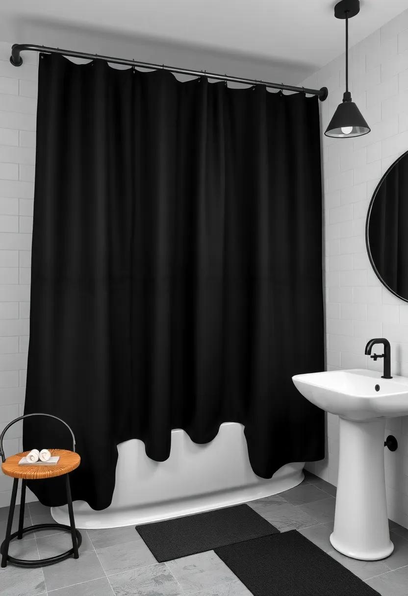 Try a Black Shower Curtain: A matte black shower curtain can create an eye-catching contrast, adding drama without overwhelming the space