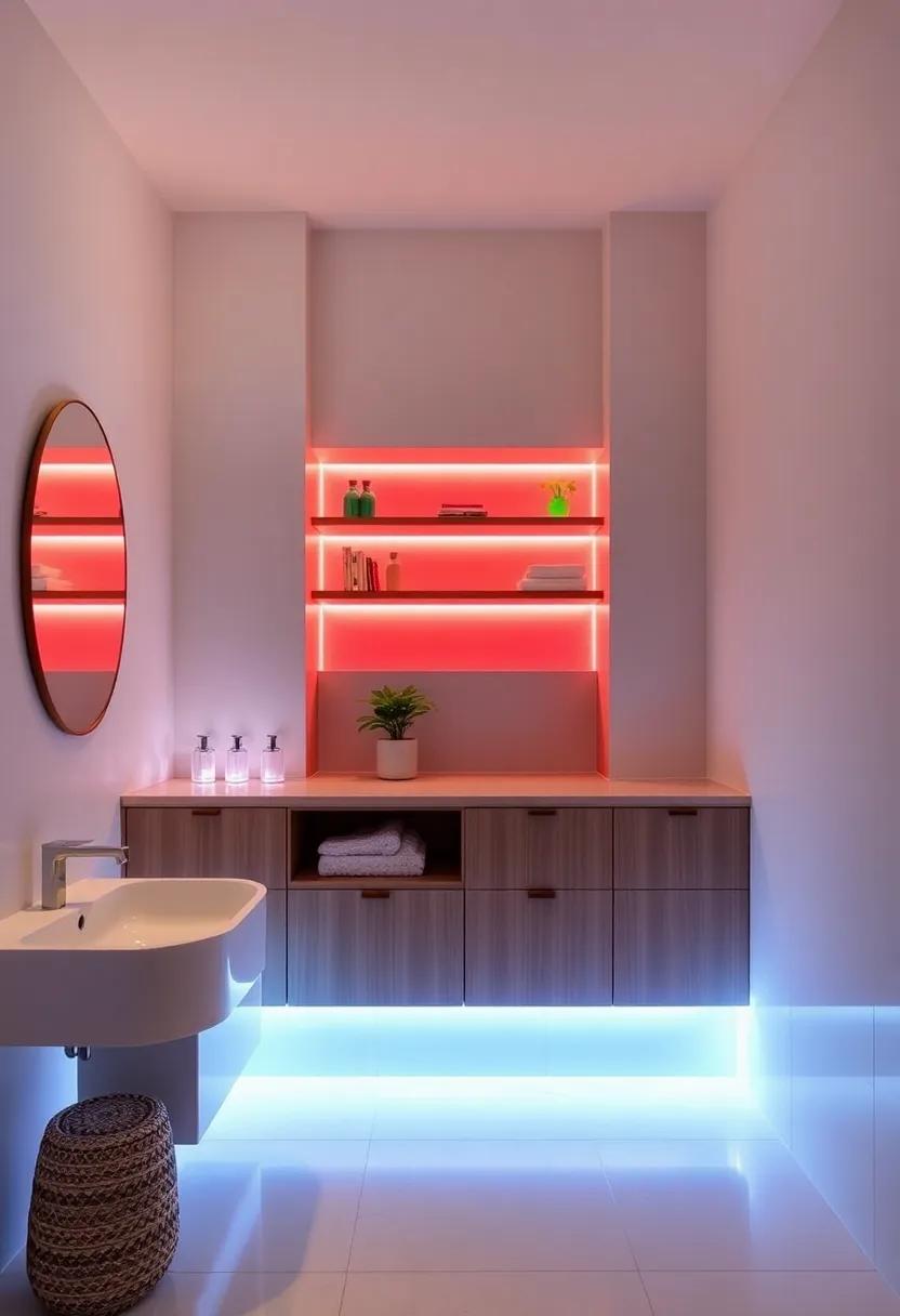 Colorful Accent Lights: use colored LED strips along shelves or under cabinetry to create a playful vibe and highlight architectural features in your ensuite