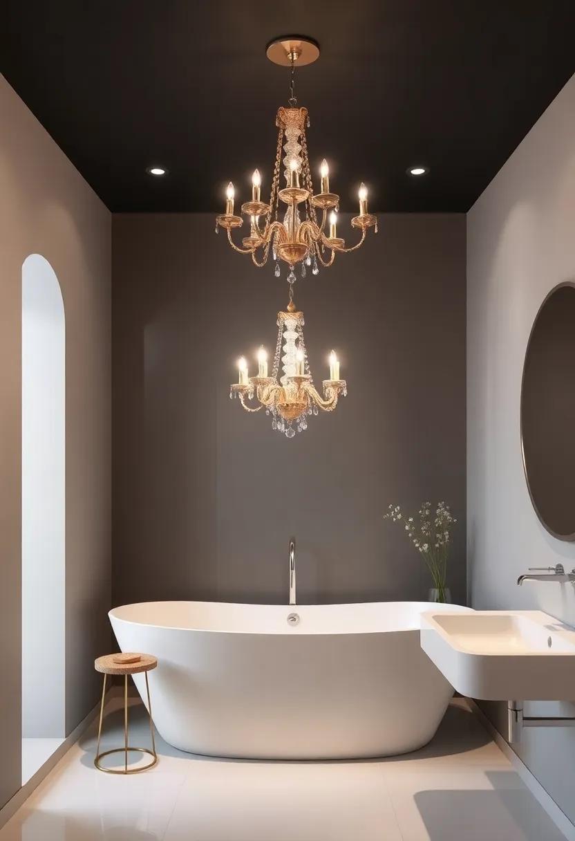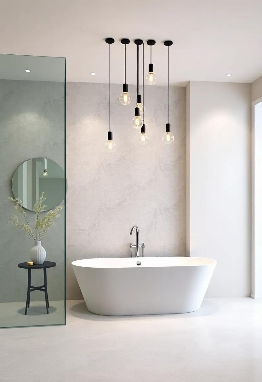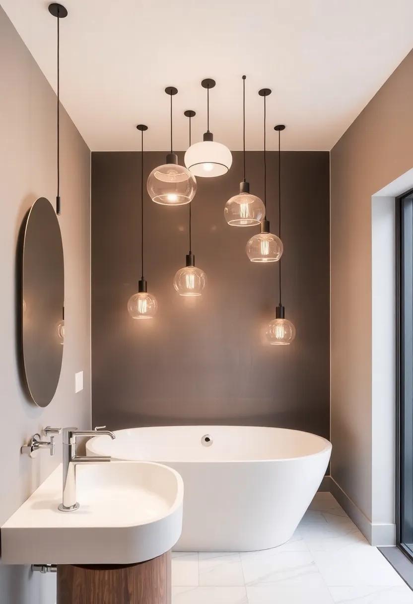 Pendant Perfection: Hang a cluster of sleek pendant lights over your bathtub for a dramatic touch that draws the eye upward and adds depth to your space