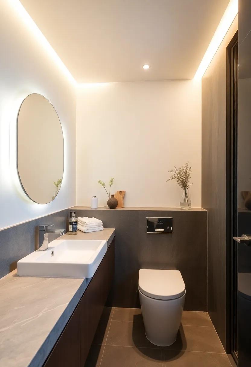 Soft Cove Lighting: Incorporate cove lighting along the ceiling or behind mirrors for indirect light that creates a warm and inviting atmosphere