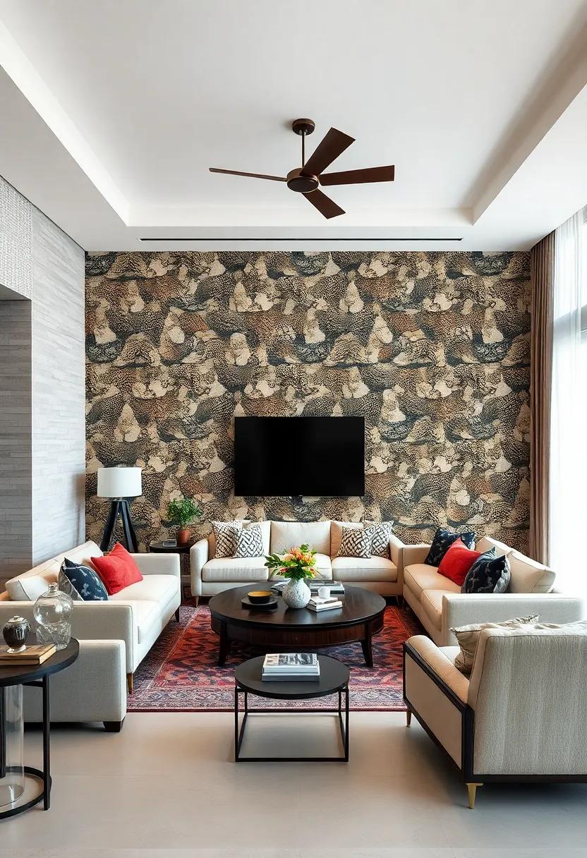For those looking to introduce a sense of adventure into their living rooms, bold animal prints offer a striking solution. Incorporating these daring patterns as an accent wall can create an eye-catching focal point while infusing the space with energy and life. Choose from a variety of prints, such as:
