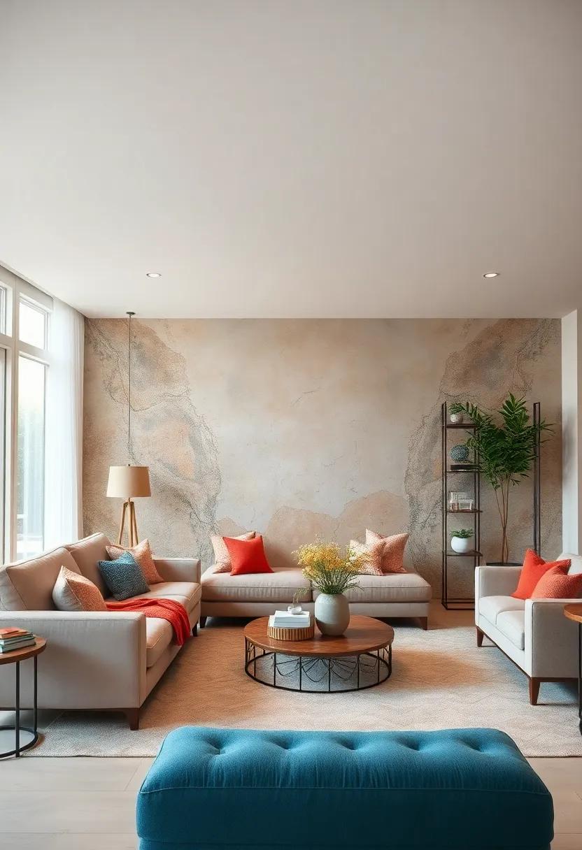 Statement Murals: Make a dramatic impact with a large-scale mural that transforms your living room into a unique storytelling space