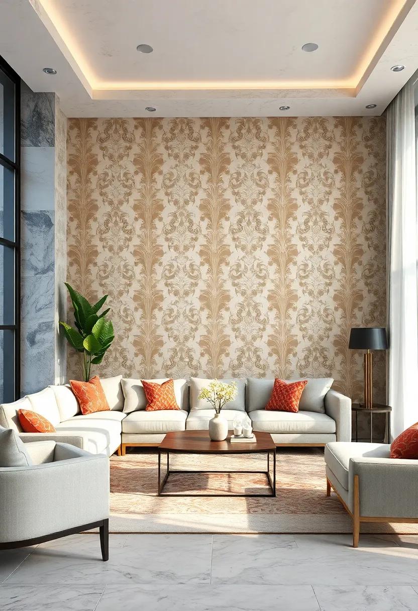 To take your art Deco wallpaper to the next level, consider wallpapers that are enhanced with luxurious metallic accents. These shimmering details can transform your living room into a glamorous retreat. Use a wallpaper featuring gold, silver, or copper foils that catch the light and reflect it beautifully. Pairing such a wallpaper with rich textures, like plush velvet or sleek leather, can amplify the opulent feel of the space. Consider the following elements to complement your Art Deco look: