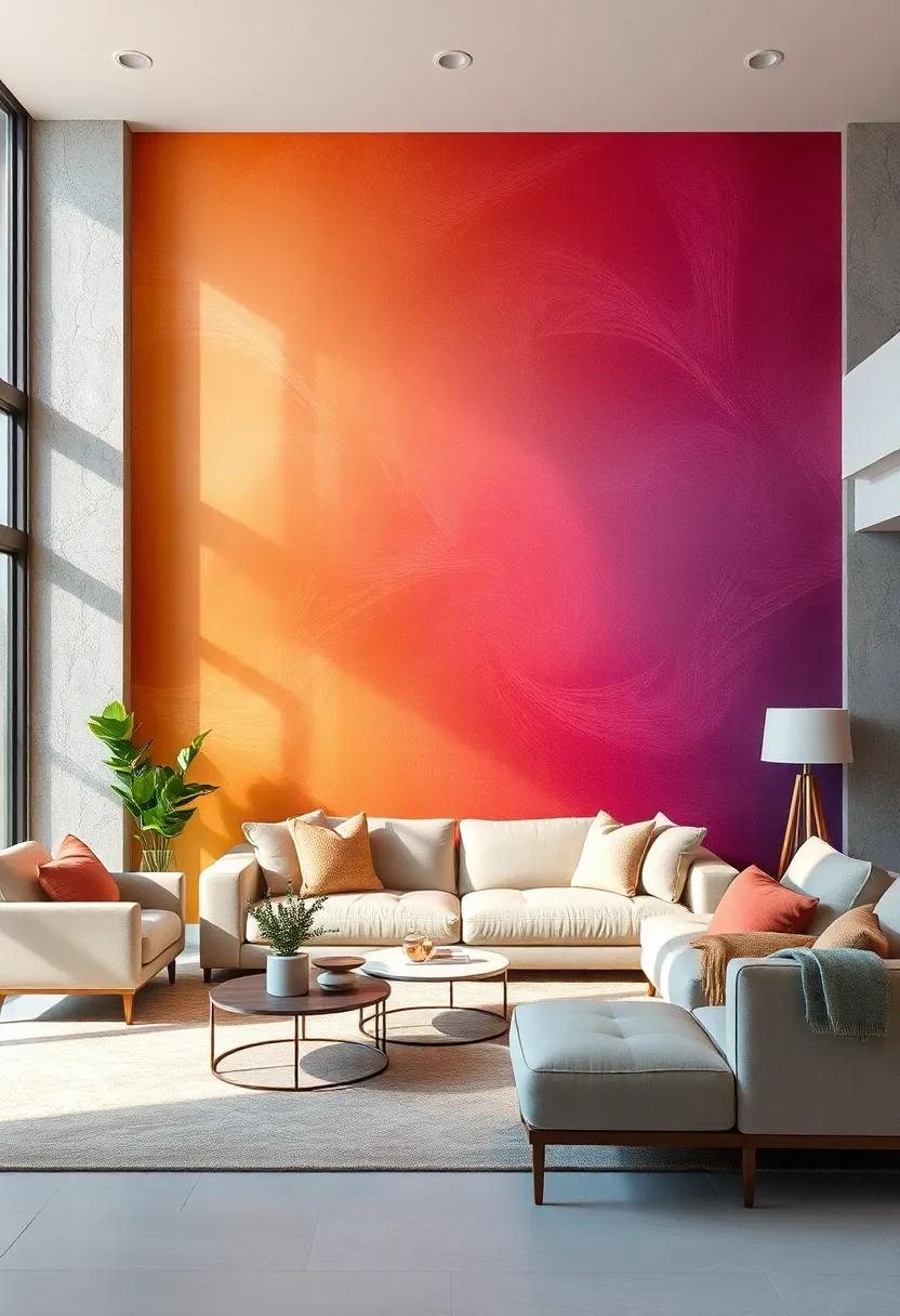 imagine a living room were the walls seem to breathe with color, effortlessly transitioning from a soft pastel at the top to a deep, rich hue at the bottom. Colorful ombre wallpaper can transform any ordinary space into a mesmerizing visual experience, making it a perfect choice for accent walls. This design element not only adds depth and dimension but can also be tailored to evoke different moods. A gentle gradient from sky blue to sea green can create a calming environment, while a shift from vibrant orange to fiery red can inject an energetic vibe into the room.