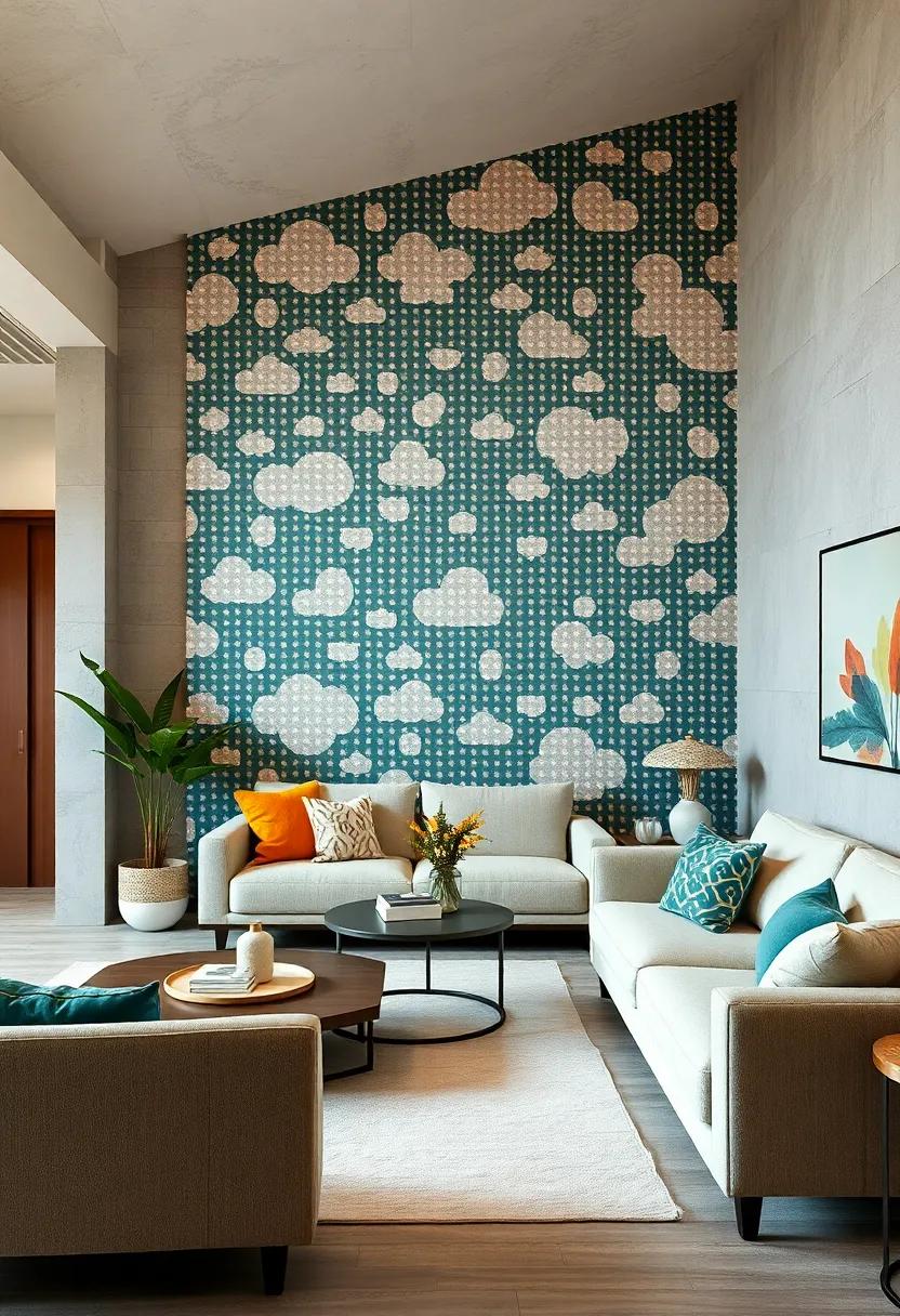 Alternatively, clouds can add an ethereal touch, creating a sense of tranquility reminiscent of a serene sky.Soft, fluffy clouds drifting across a sky-blue backdrop can evoke feelings of calmness, helping to foster relaxation after a long day. Pair this with light furniture and accessorize with nature-inspired elements—think leafy plants or a soft throw blanket that mimics the comfort of a cloud. The delightful whimsy instilled by these motifs encourages creativity and wonder, making your living room a delightful retreat.