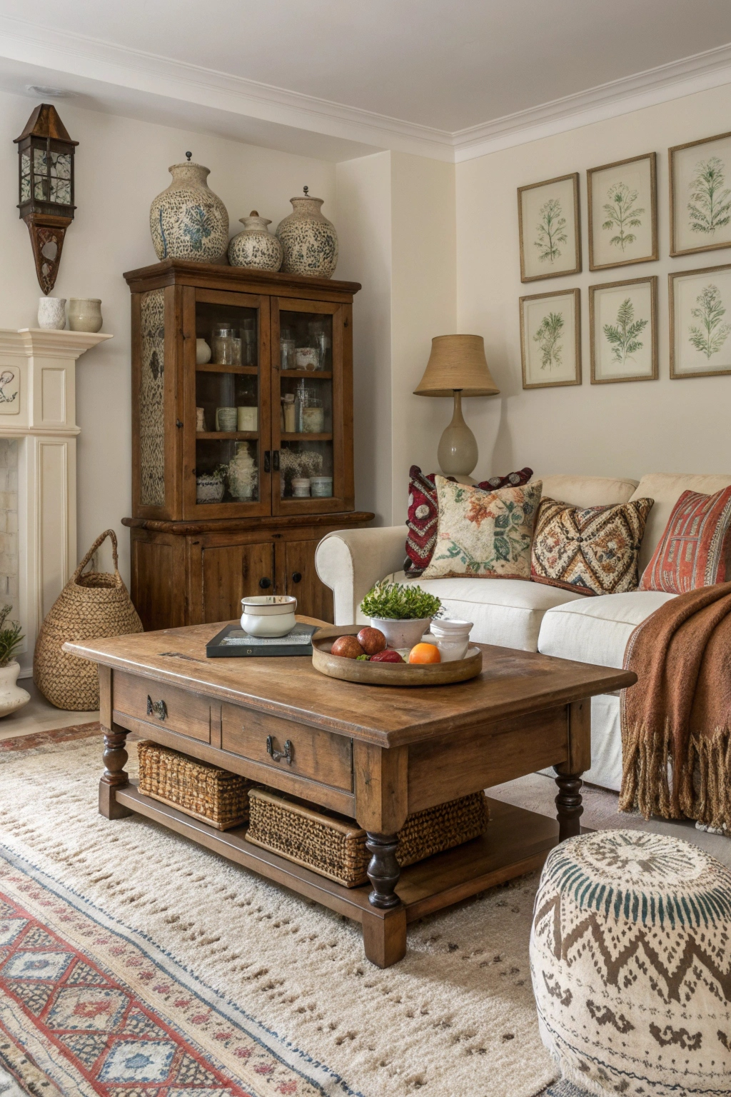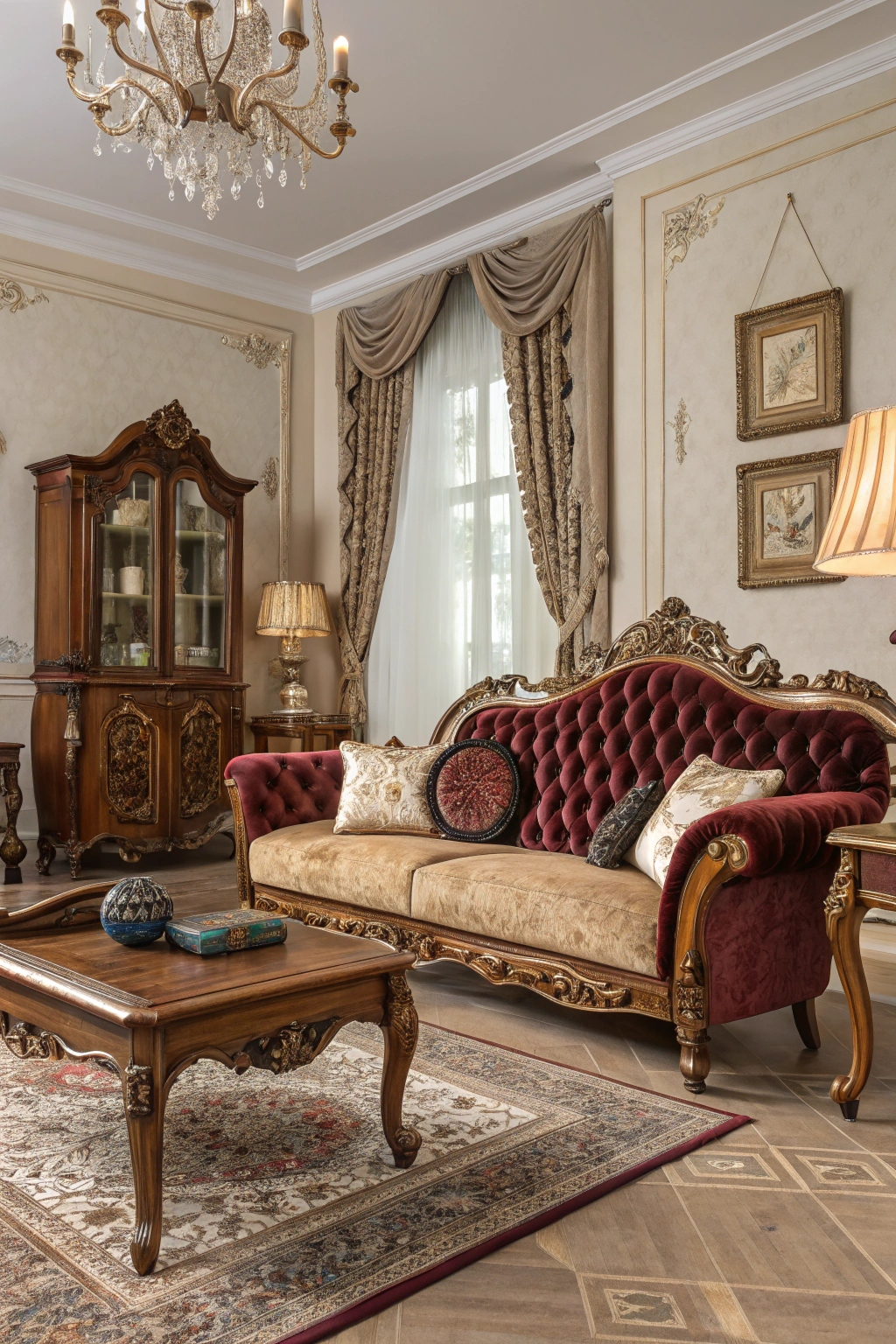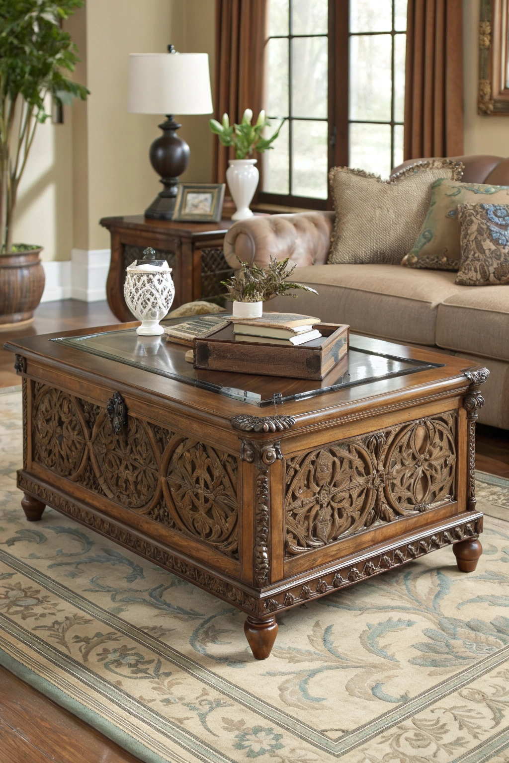 A vintage-inspired coffee table can serve as a captivating centerpiece in your Victorian living room. Consider options such as: