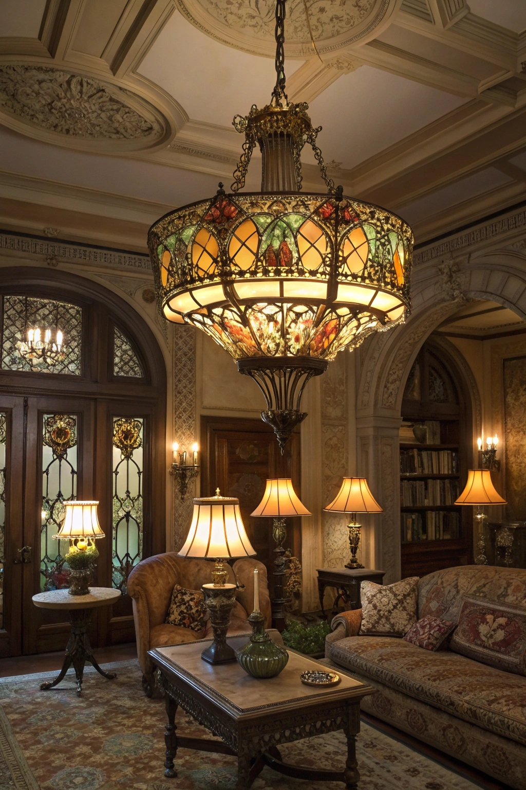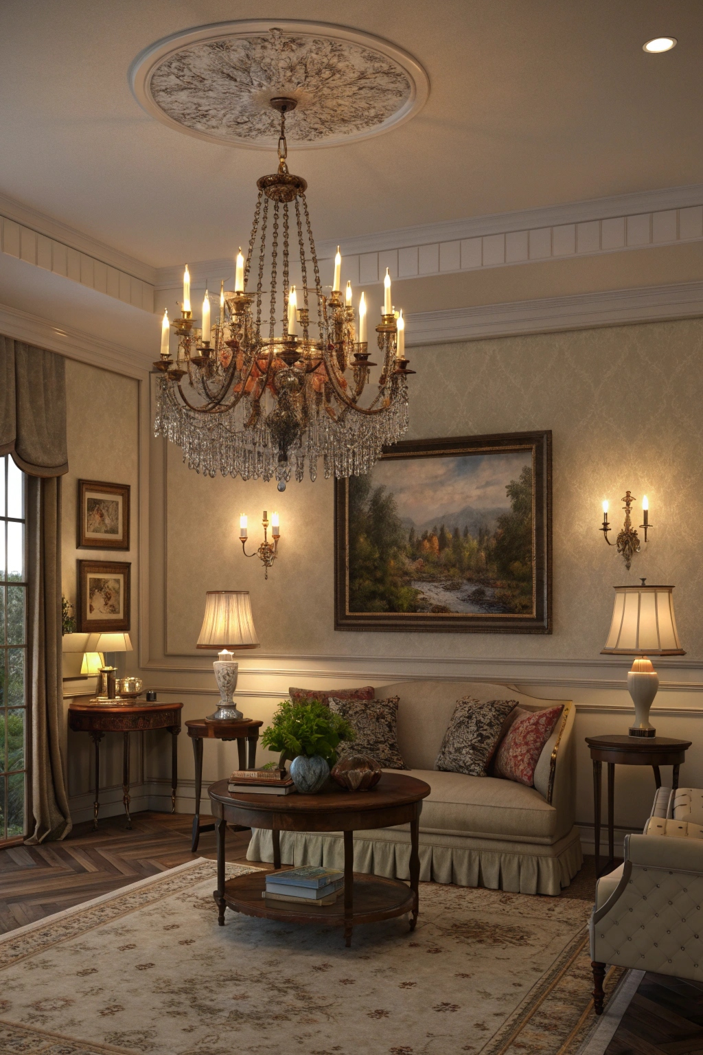 Employ a combination of lighting sources to create a warm and versatile Victorian living room. Begin with a statement chandelier as the centerpiece, then add table and floor lamps to provide cozy illumination. Use wall sconces to accentuate artwork and install dimmer switches for adjustable brightness. This layered approach ensures your space is both functional and inviting.