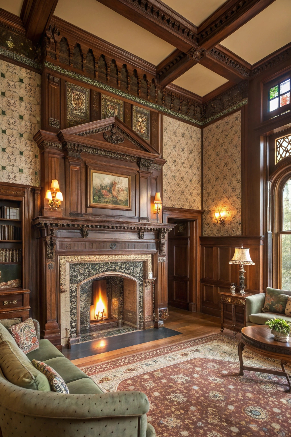 Victorian interiors often feature wallpaper that serves as a dramatic backdrop. Opt for intricate floral motifs, damask designs, or geometric patterns that add richness and texture. Selecting wallpapers with deep, luxurious colors enhances the room’s elegance. Ensure your wallpaper complements your furnishings to create a harmonious and inviting space.