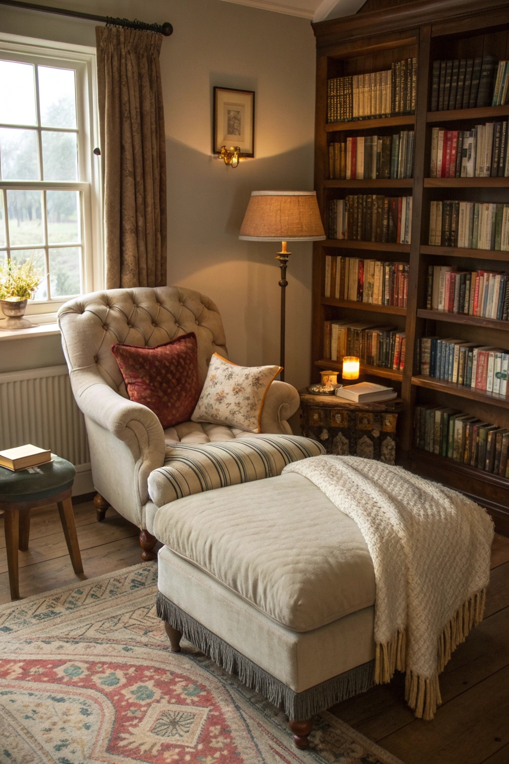 Create a serene reading nook within your Victorian living room to enjoy quiet moments. Include: