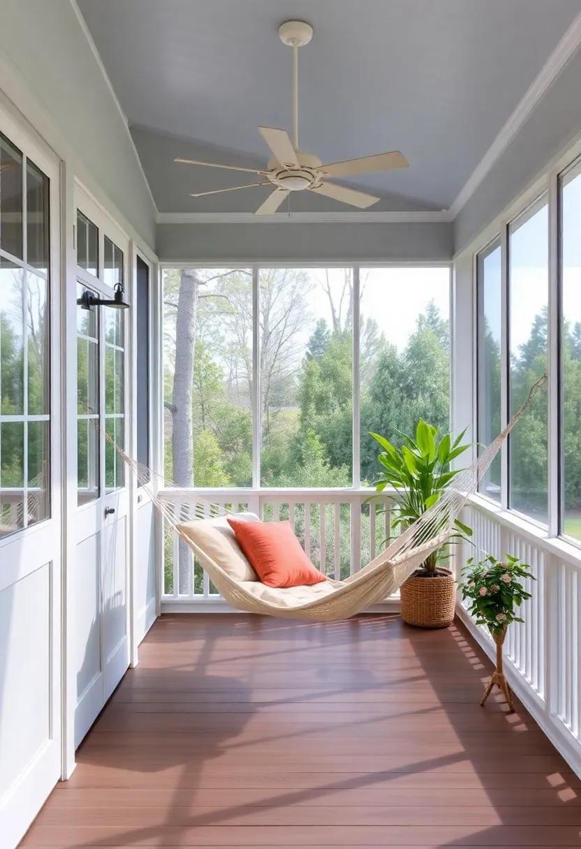 your screened porch can transform into a true sanctuary with the introduction of a hammock that invites you to sway gently while basking in the warmth of the sun or the cool evening breeze. Imagine settling into a cozy space adorned with vibrant cushions and delicate throws, cradled by the gentle embrace of fabric that allows your worries to drift away. The rhythmic sway can soothe the spirit, providing a perfect backdrop for indulging in a good book or sipping on a refreshing iced tea.