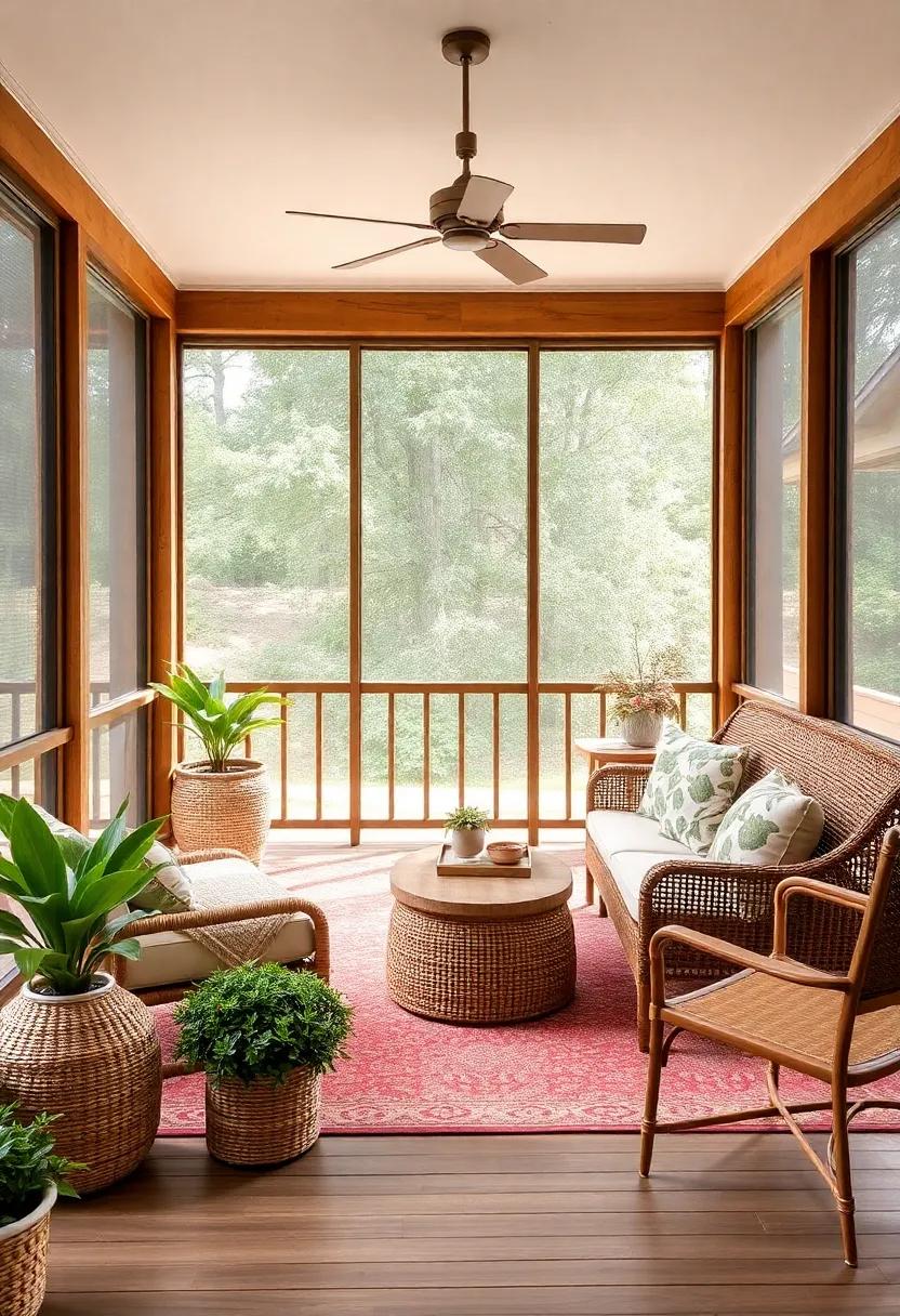 | Wicker chairs | Natural fibers | Adds texture without obstructing views. |