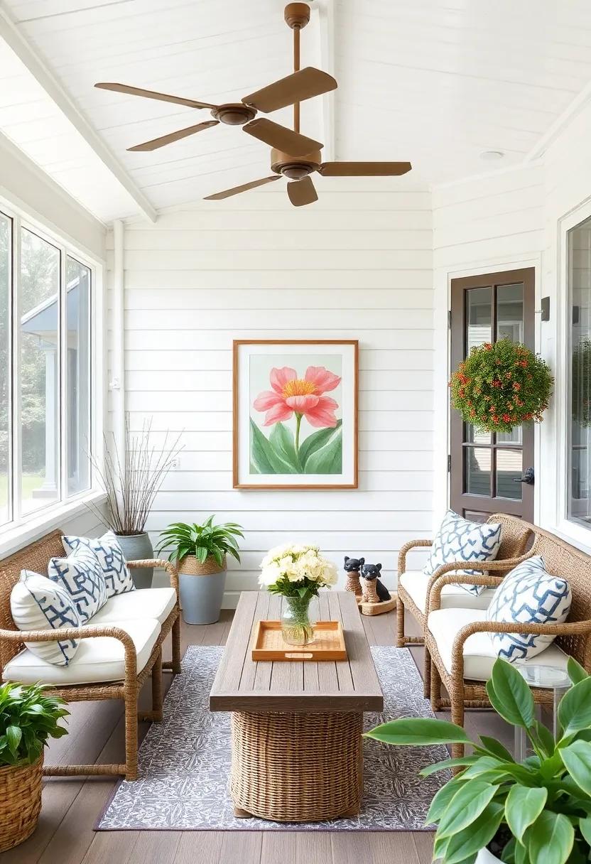 Transform your screened porch into a serene sanctuary by selecting thoughtful artwork that invites contemplation and soothing reflections. Consider pieces that embody soft color palettes and gentle themes, such as nature scenes or abstract designs that evoke the feeling of floating on a calm sea. The right artwork can serve as a backdrop for meditation or quiet conversations, enhancing the overall ambiance. Incorporate various mediums, from canvas paintings to fabric wall hangings, ensuring that each piece resonates with your personal journey and complements the tranquility of your outdoor escape.